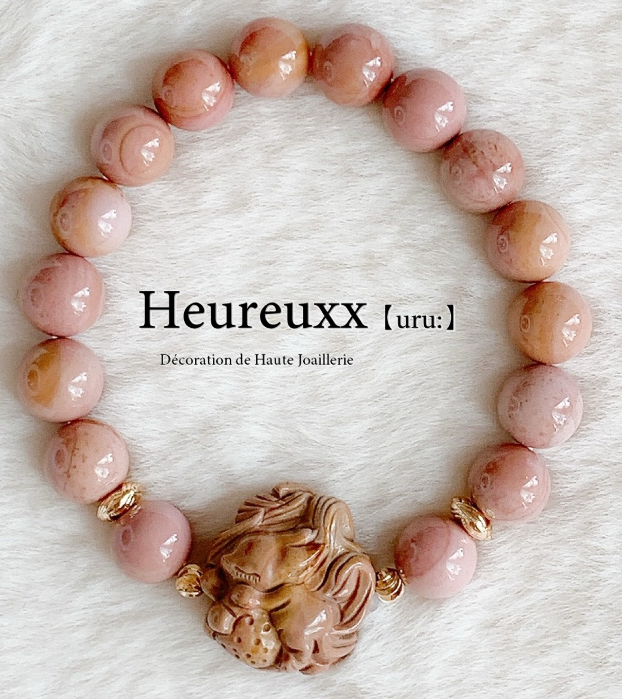 ちこ様専用♡9mm ピンクアラシャン瑪瑙 アラシャン瑪瑙 眠り九尾狐といちご ブレスレット♡