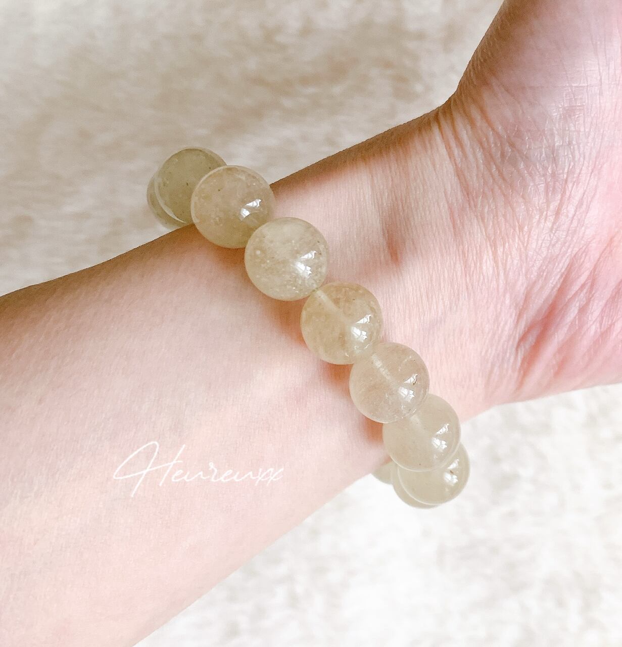 淡いイエローとゴールドのパーツと良く合いとても可愛いブレスレットでございます♡