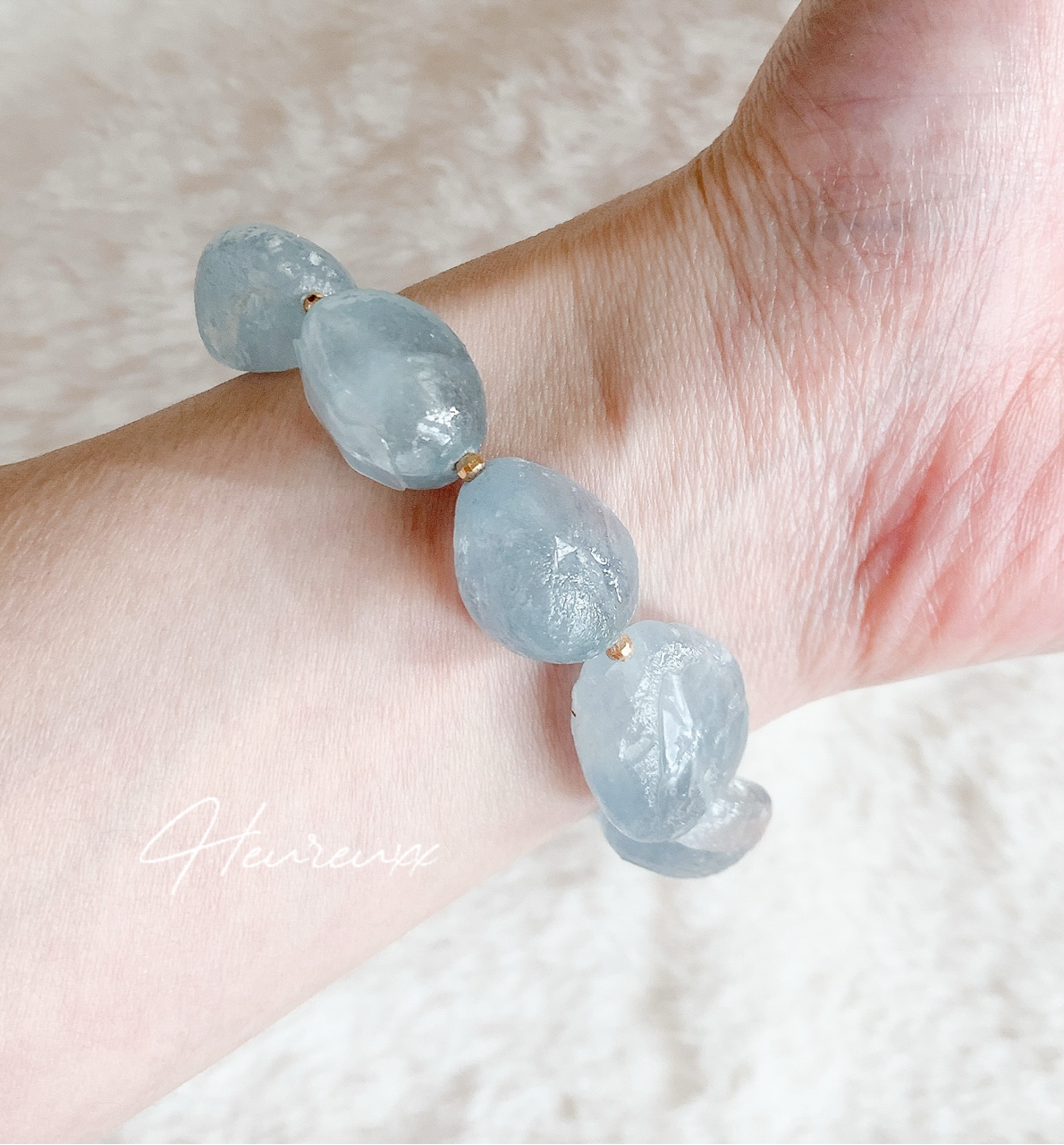 セレスタイトの原石タンブルブレスレットでございます❁⃘*.゚