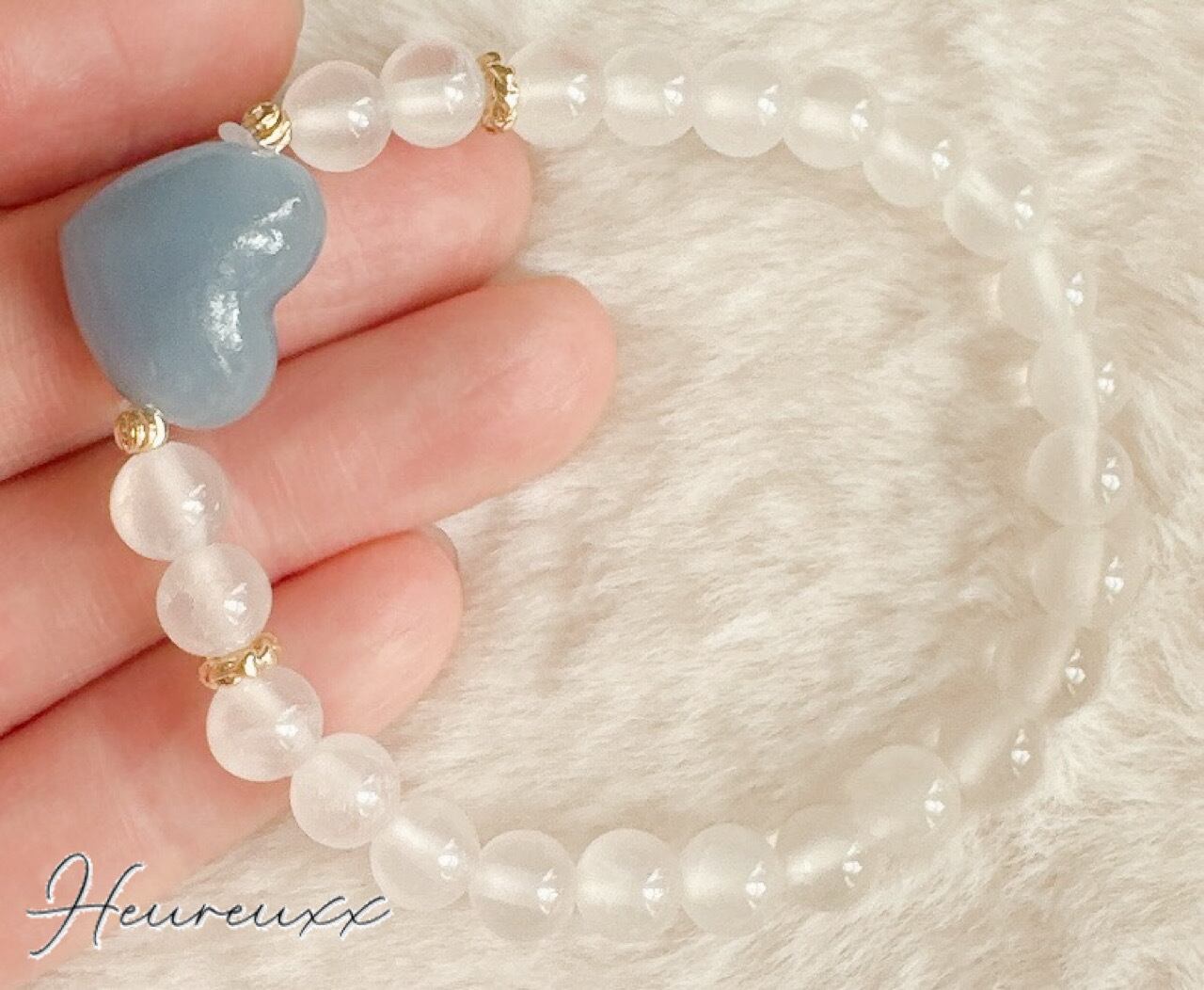 ホワイトジェイドにエンジェライトのハートのパーツを合わせました❁⃘*.゚