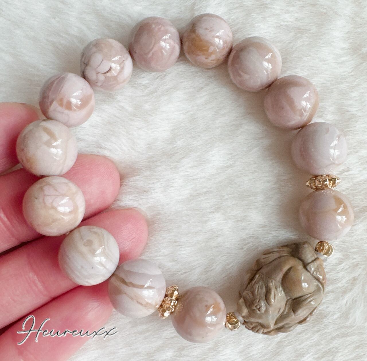 ちこ様専用♡ピンクアラシャン瑪瑙 アラシャン瑪瑙 眠り九尾狐 ブレスレット♡