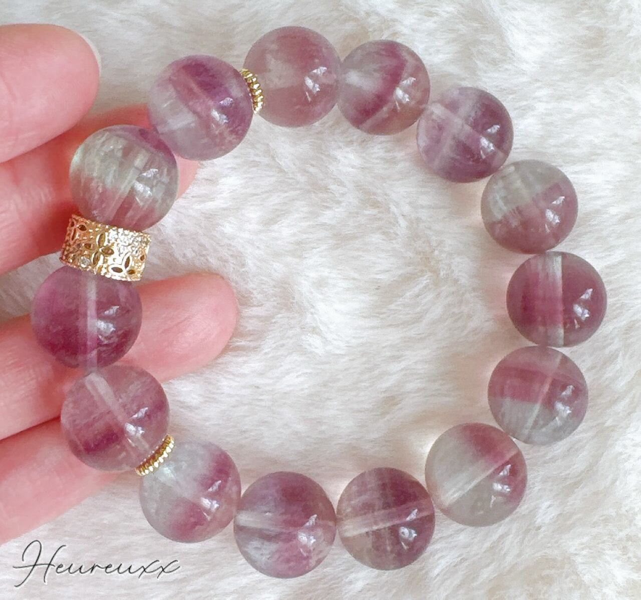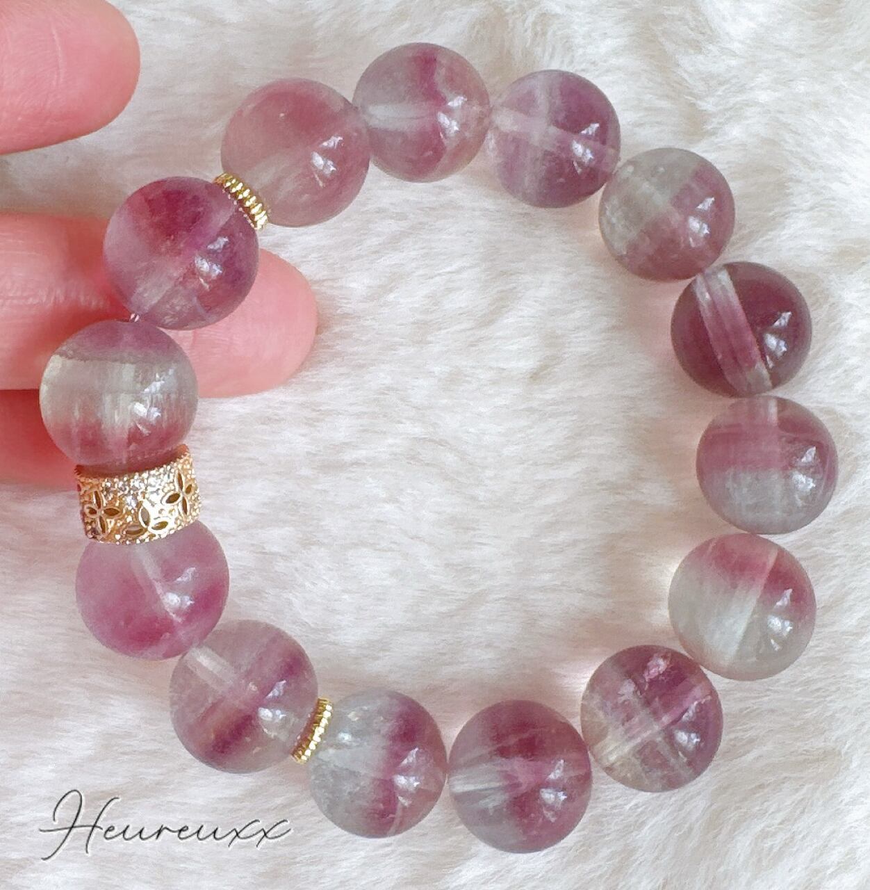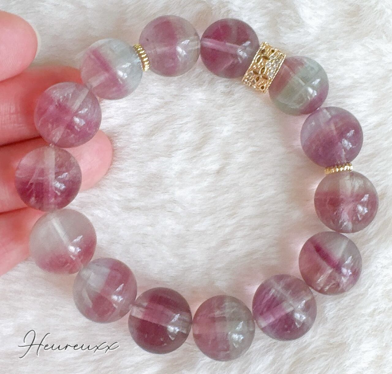 大玉のバイカラーフローライトのブレスレットでございます❁⃘*.゚