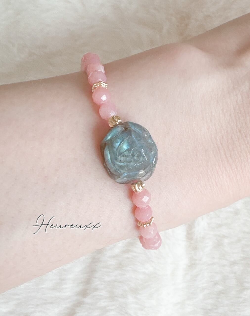 DB-269♡ピンクオパール ラブラドライト 薔薇 ブレスレット♡