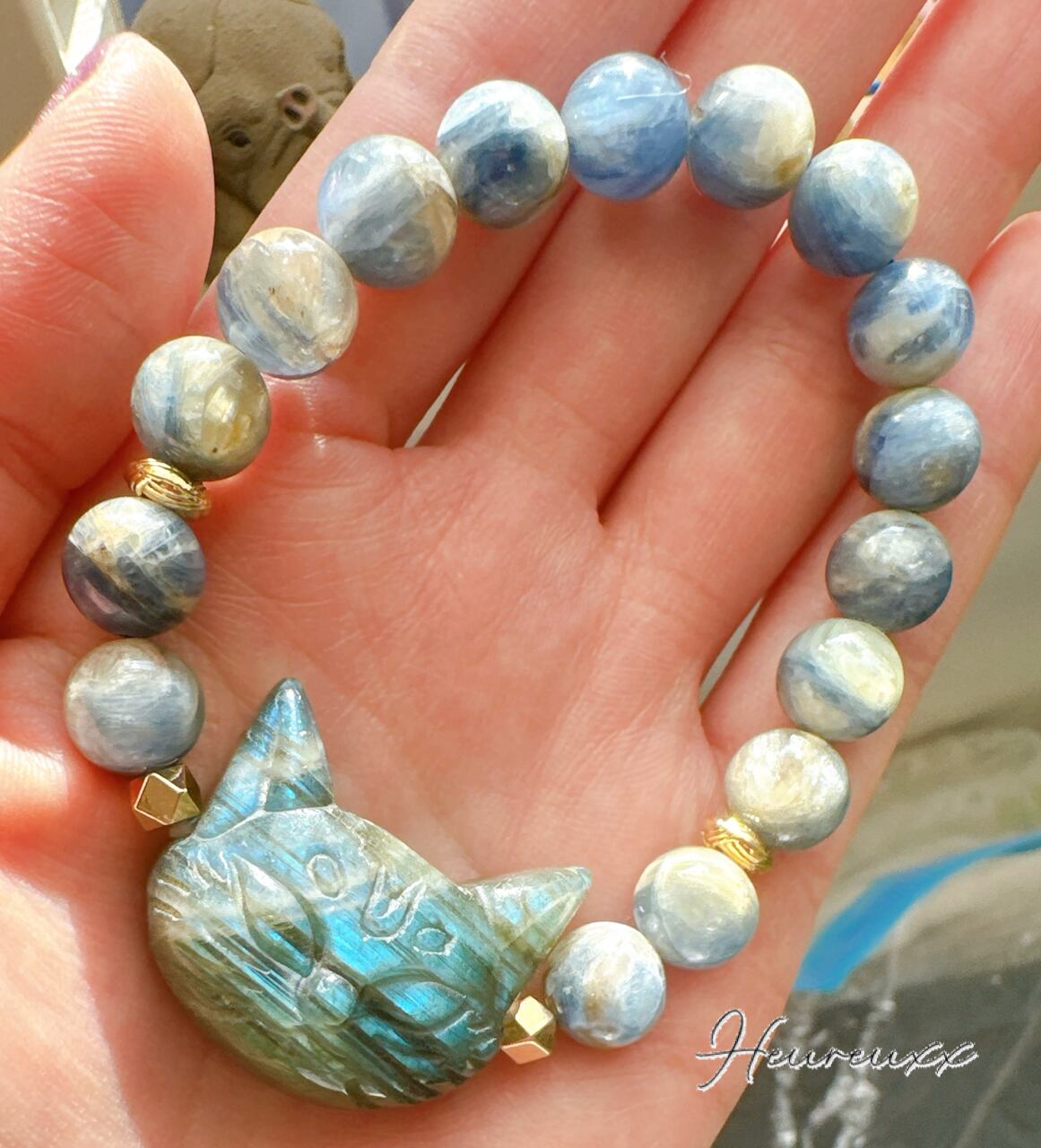 #ラブラドライト猫ブレスレット