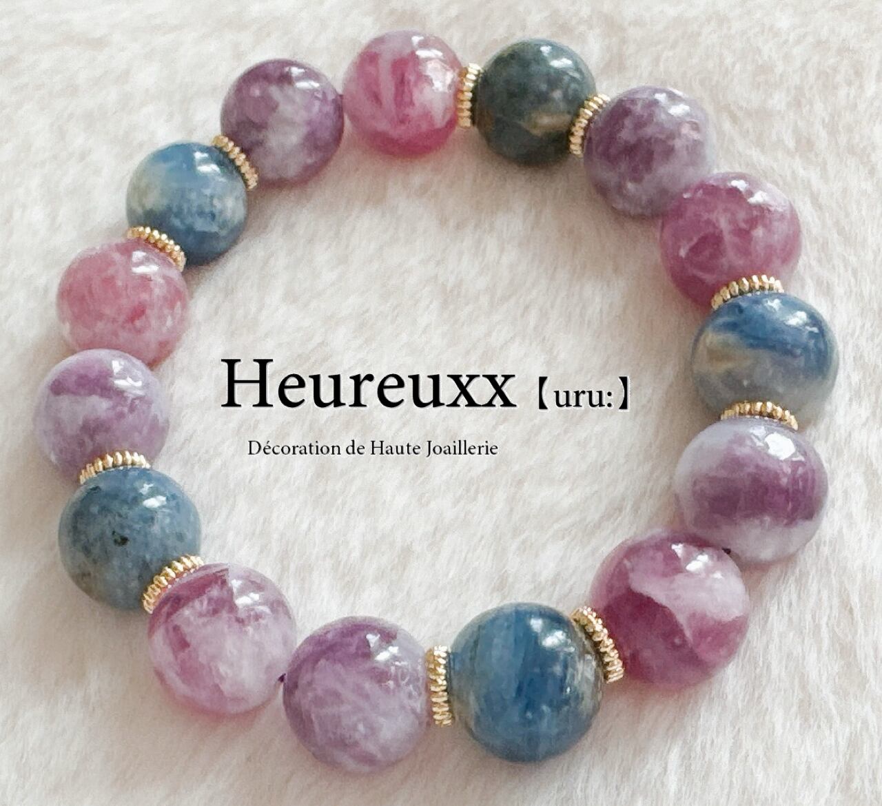 ピンクレピドライト、パープルレピドライト、カイヤナイトのミックスブレスレットでございます❁⃘*.゚