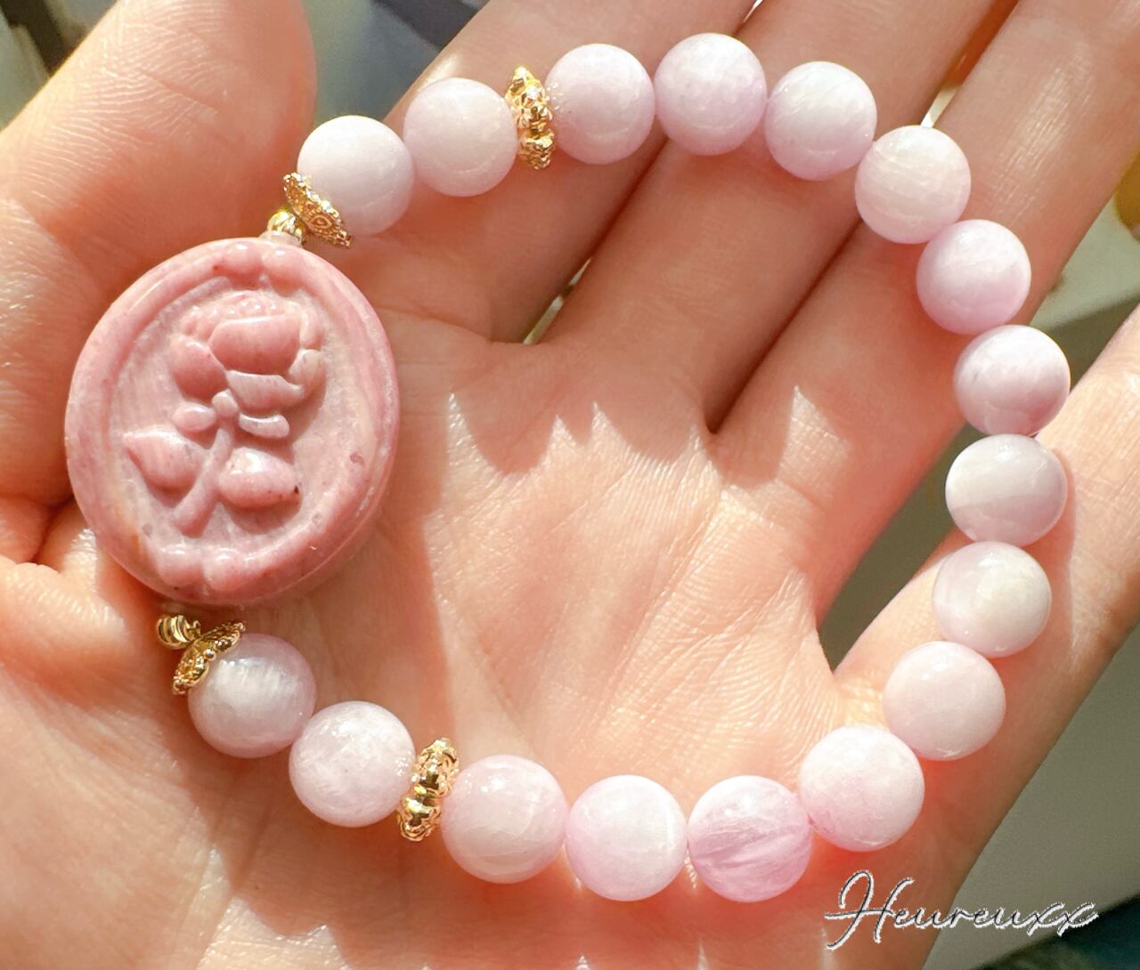 DB-287♡クンツァイト ロードナイト 薔薇 カメオ風 ブレスレット♡