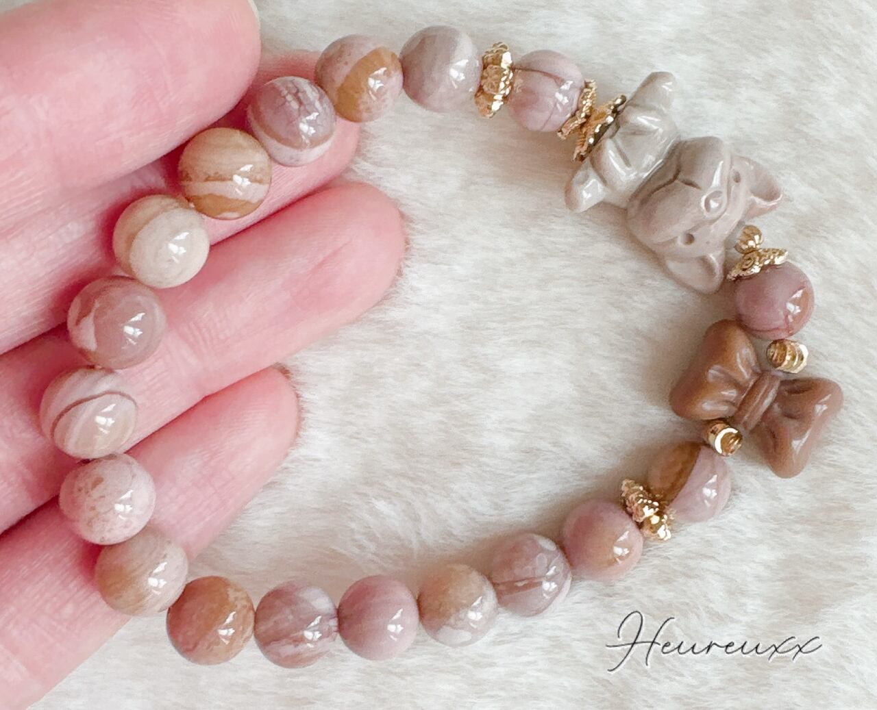 DB-302♡ピンクアラシャン瑪瑙 アラシャン瑪瑙 犬 リボン ブレスレット♡