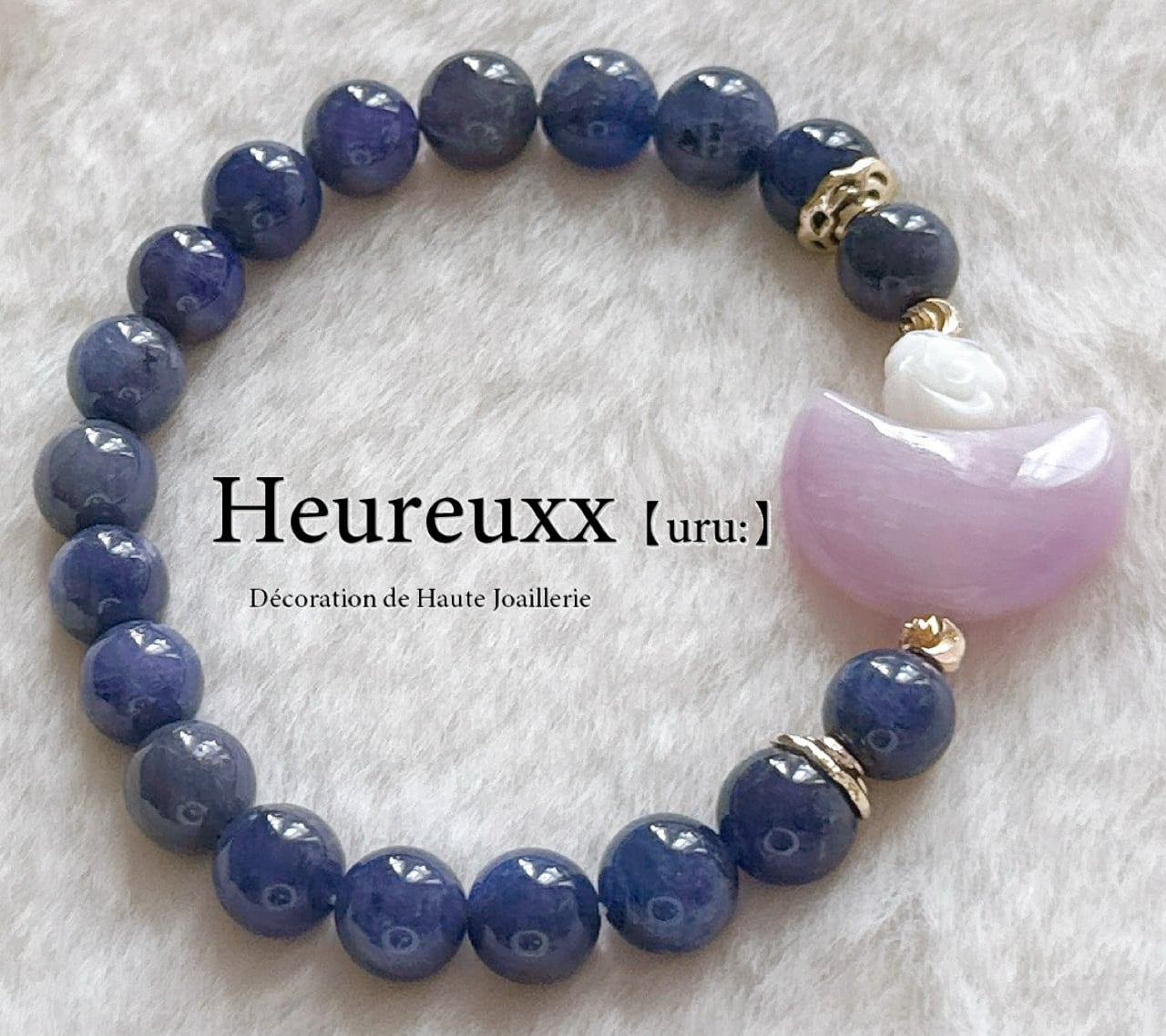 タンザナイトにクンツァイトの月を合わせシェルの薔薇を添えました❁⃘*.゚