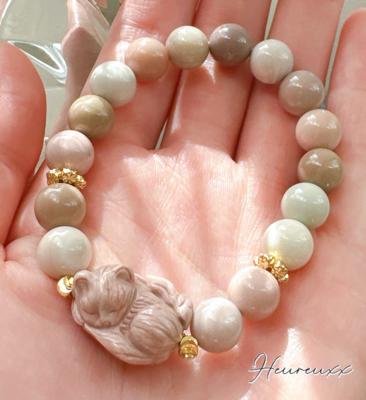 ♡マカロンアラシャン瑪瑙 アラシャン瑪瑙 眠り猫 ブレスレット♡