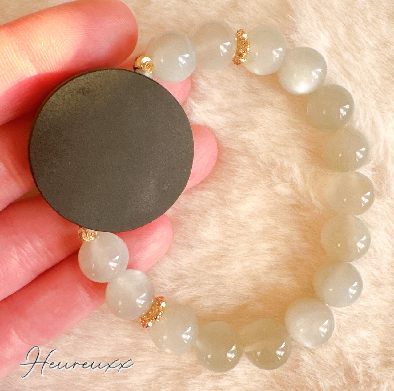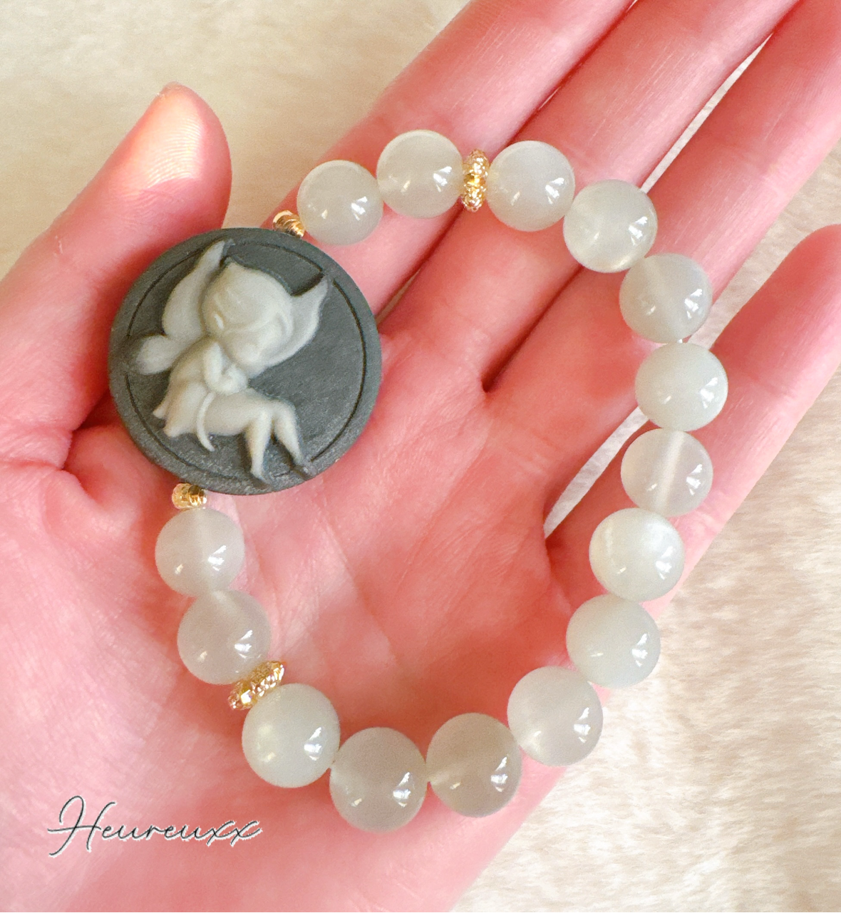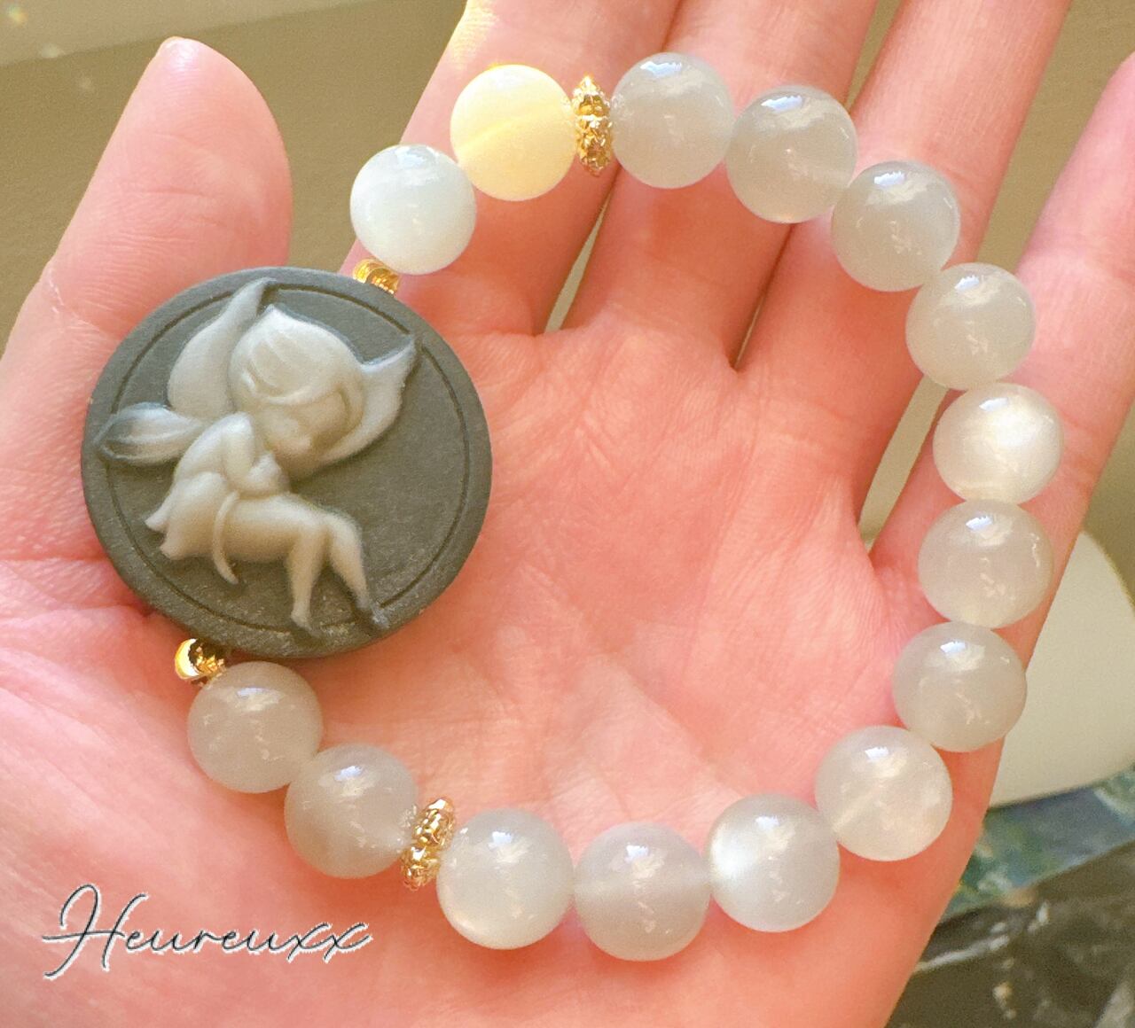 ♡グリーンムーンストーン 太極石 妖精 ブレスレット♡