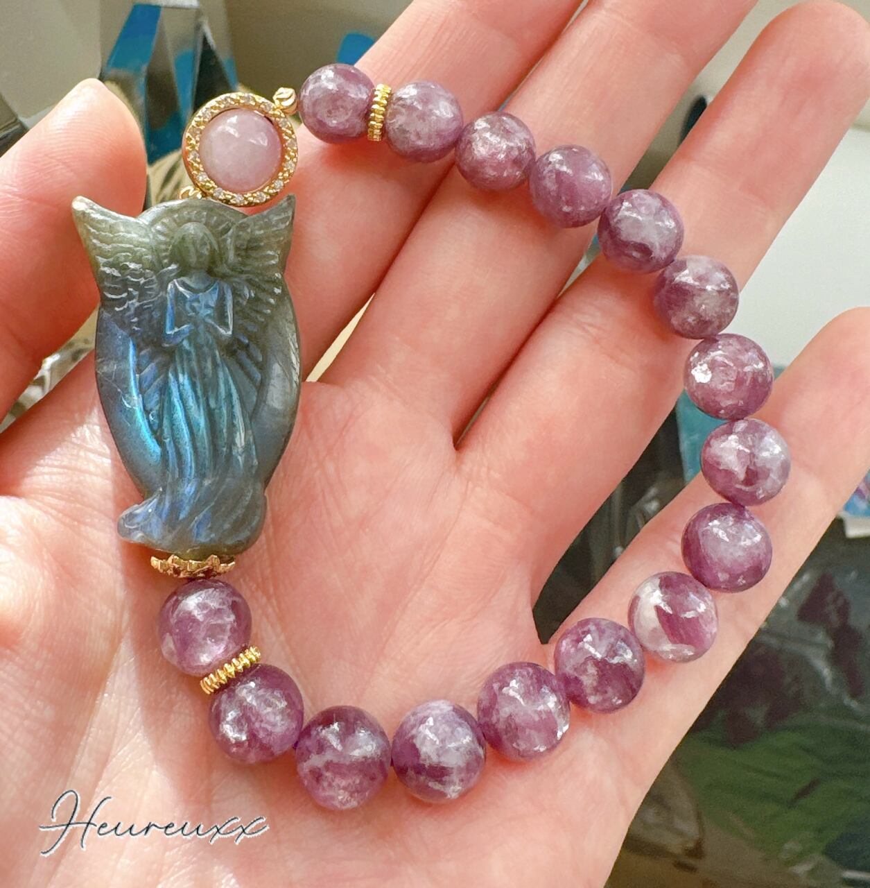 ♡パープルレピドライト ラブラドライト 天使 クンツァイト ブレスレット♡