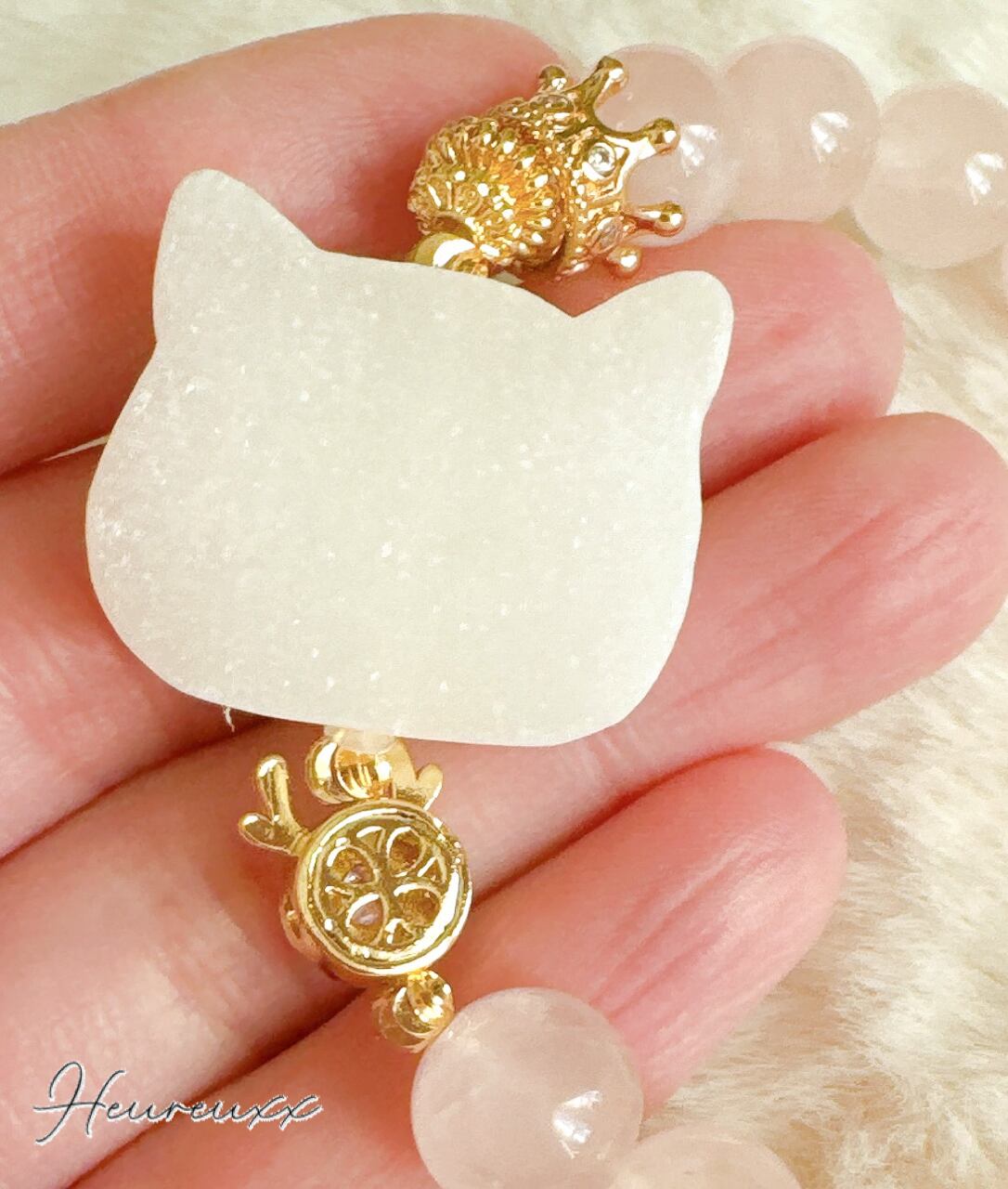 ♡ローズクォーツ ホワイトジェイド 猫 トナカイ ブレスレット♡
