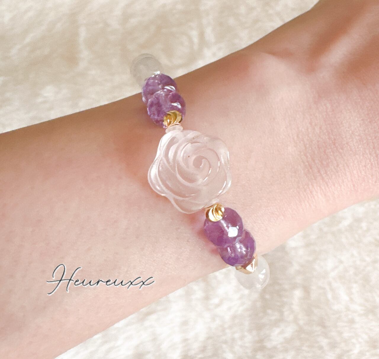 ローズクォーツの薔薇は透明感が高く淡いピンクのお色味が可愛いです♡