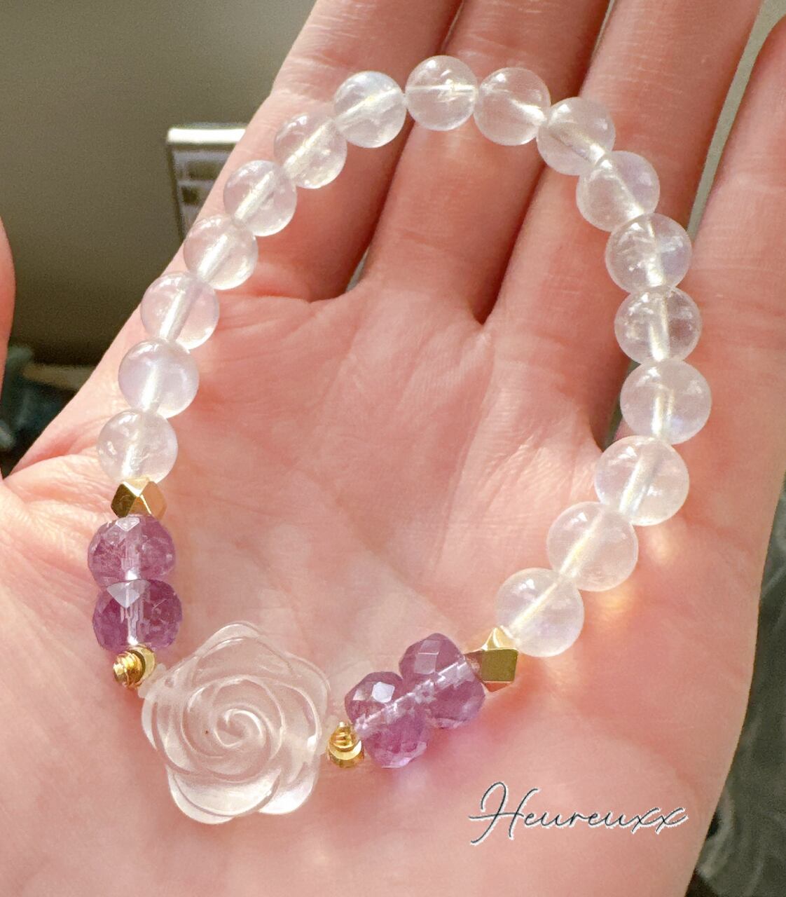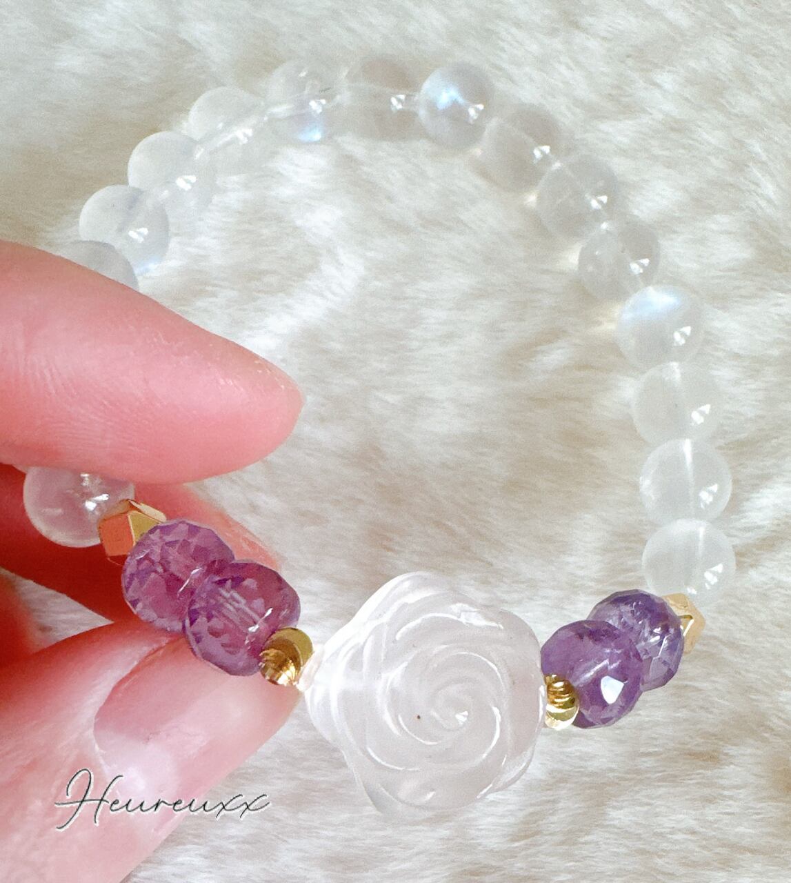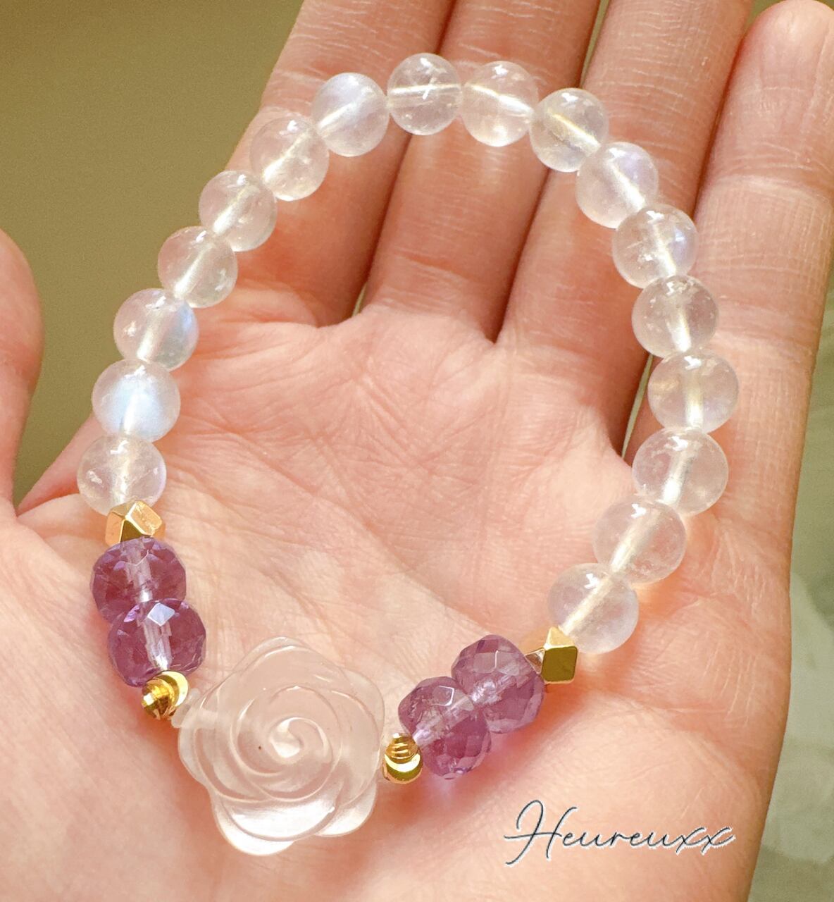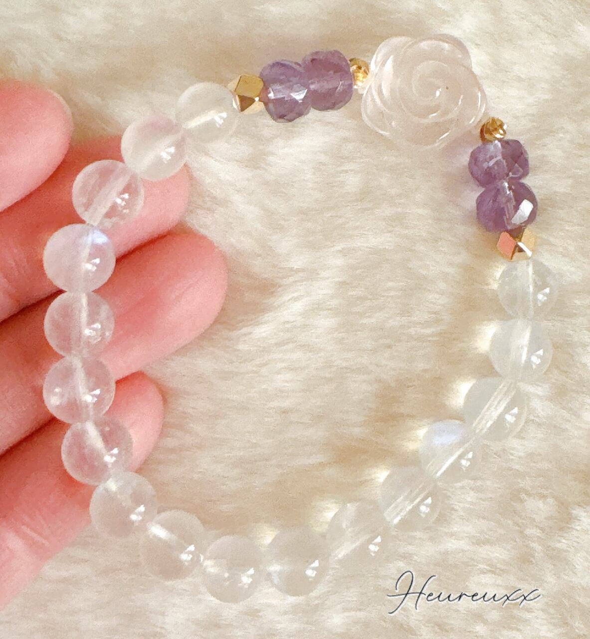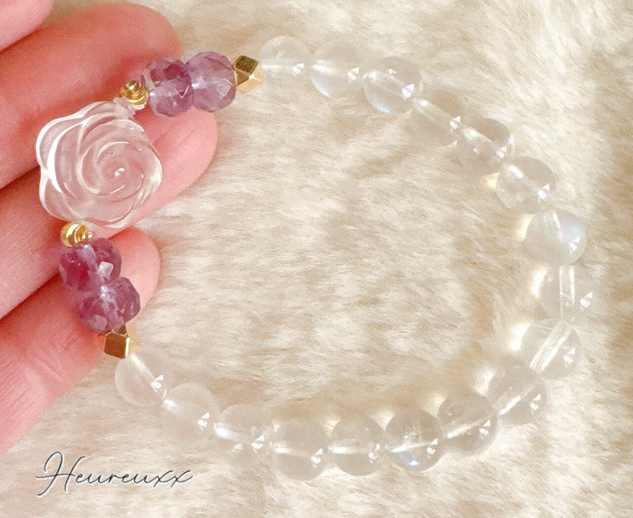 ♡ムーンストーン ローズクォーツ 薔薇 アメジスト ブレスレット♡