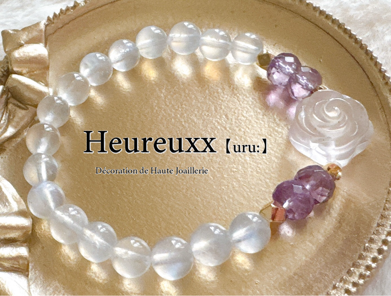 ムーンストーンにローズクォーツの薔薇を合わせ、サイドにアメジストを添えました❁⃘*.゚