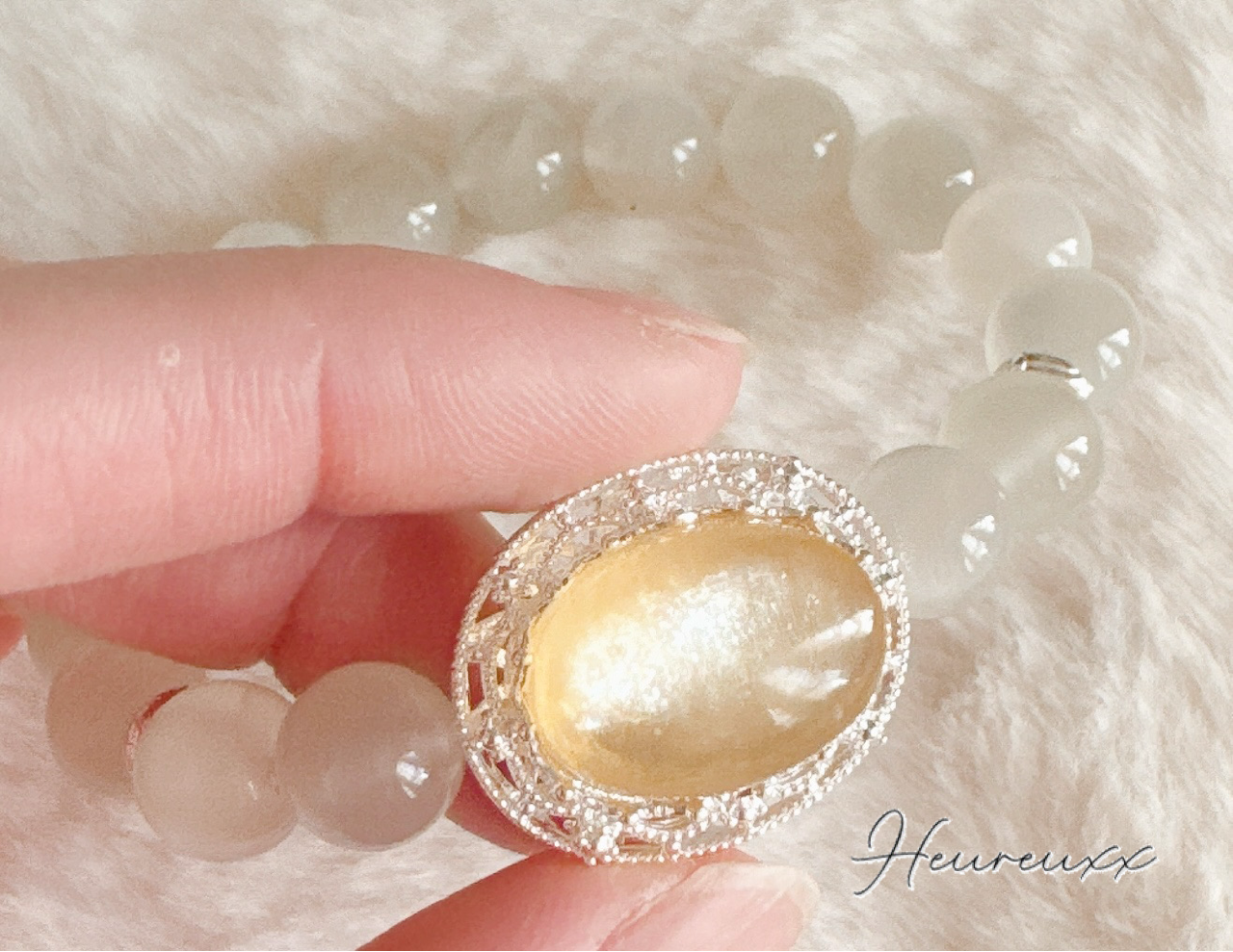 ホワイトムーンストーンはホワイトシラーが全体的に綺麗に見られとても可愛いです♡