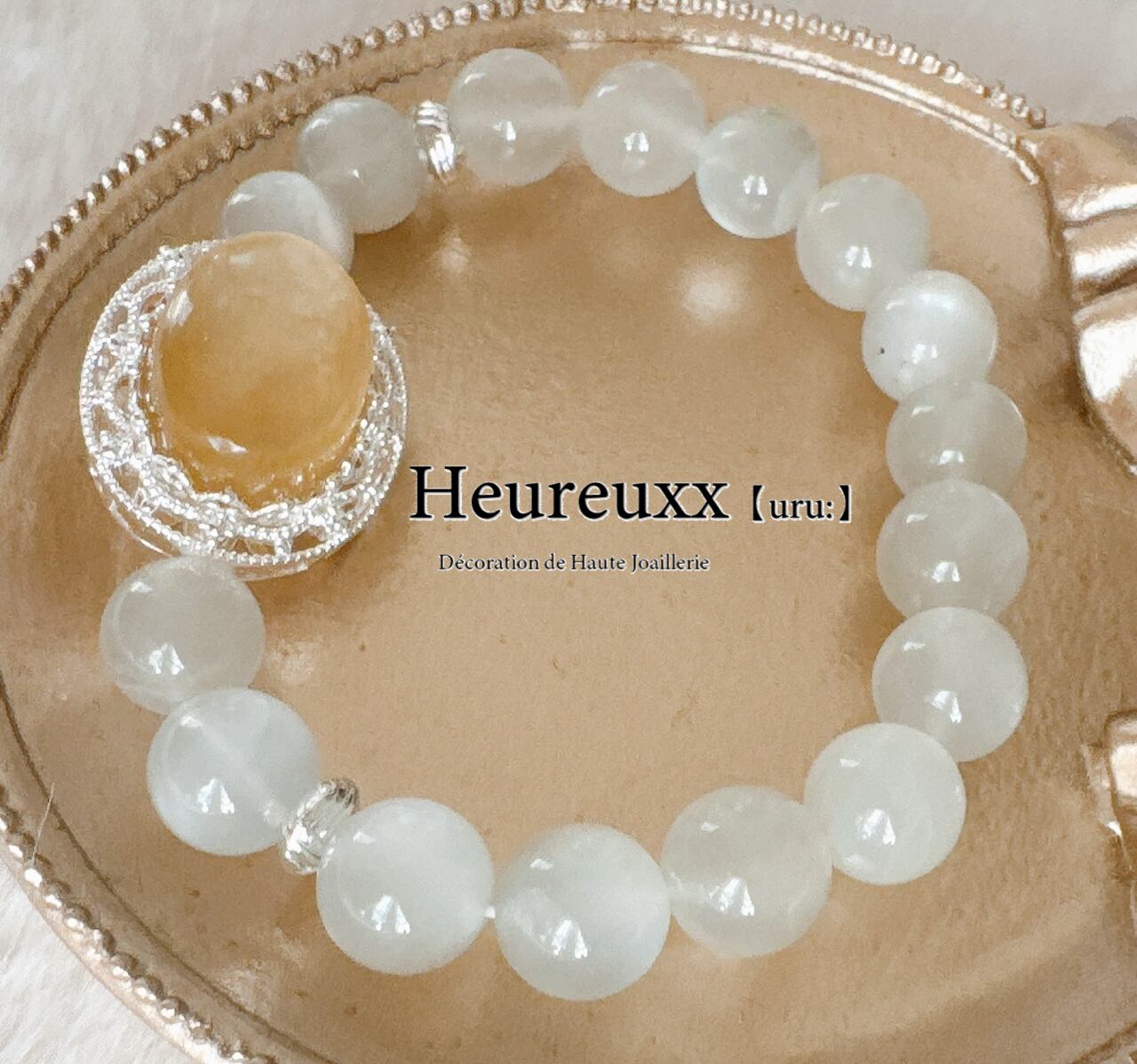 ホワイトムーンストーンにゴールドマイカのパーツを合わせました❁⃘*.゚