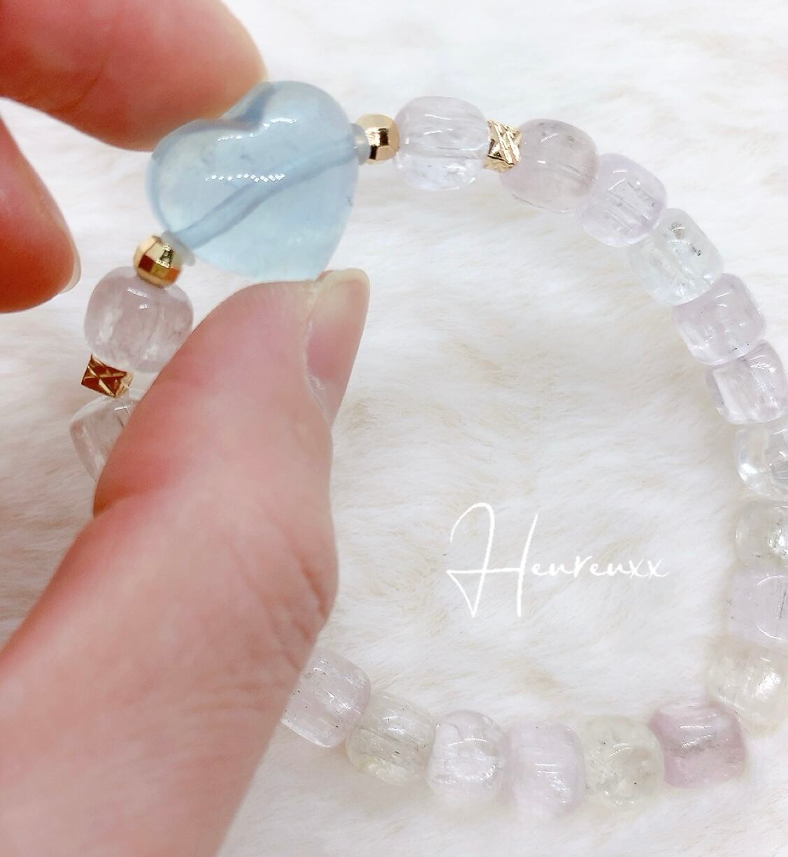 透明タイプのクンツァイトにハートのアクアマリンを合わせました❁*。