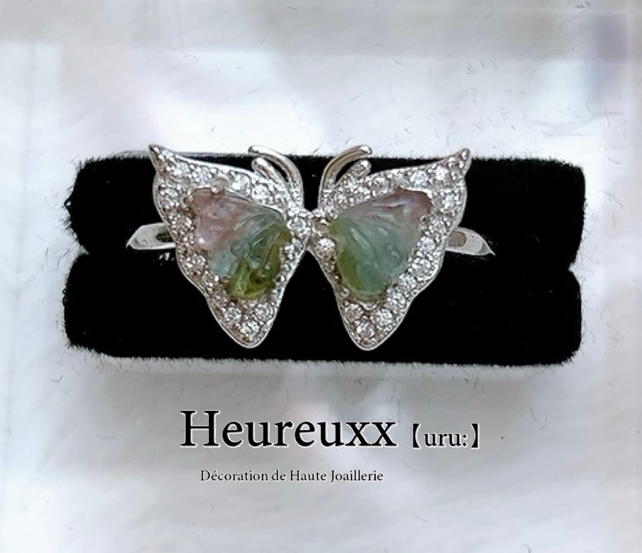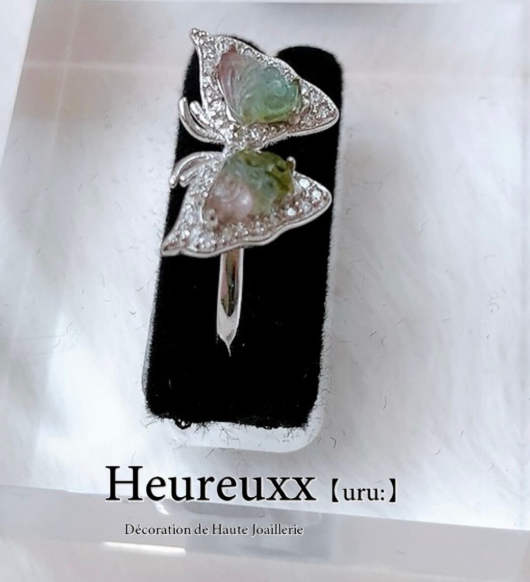 ウォーターメロントルマリンの蝶々のシルバー925、フリーサイズリングです❁*。