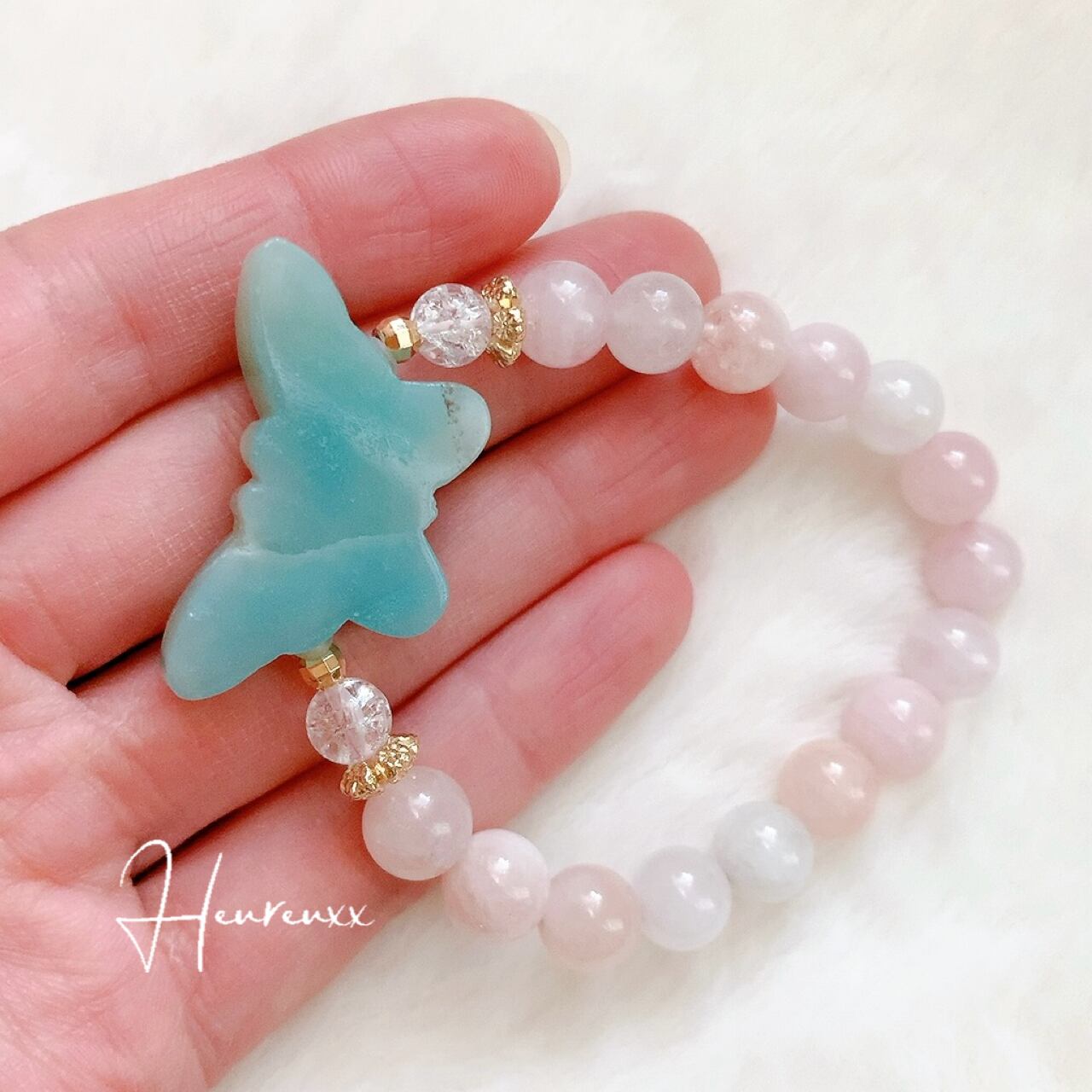 DB-27♡モルガナイト アマゾナイト 蝶々 ブレスレット♡