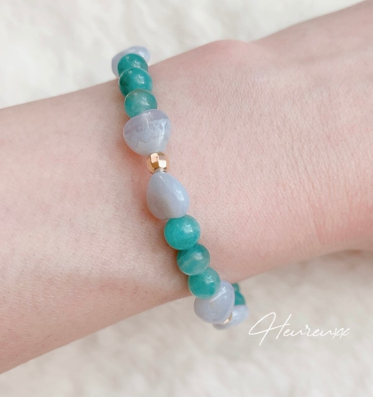 DB-51♡アマゾナイト ブルーレースアゲート ハート ブレスレット♡