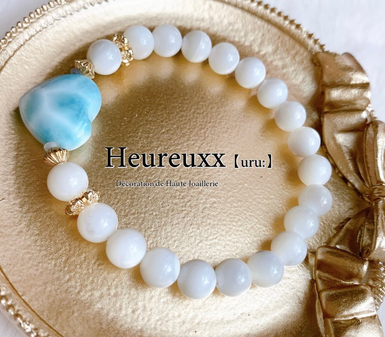 マザーオブパールにラリマーのハートのパーツを合わせました❁*。