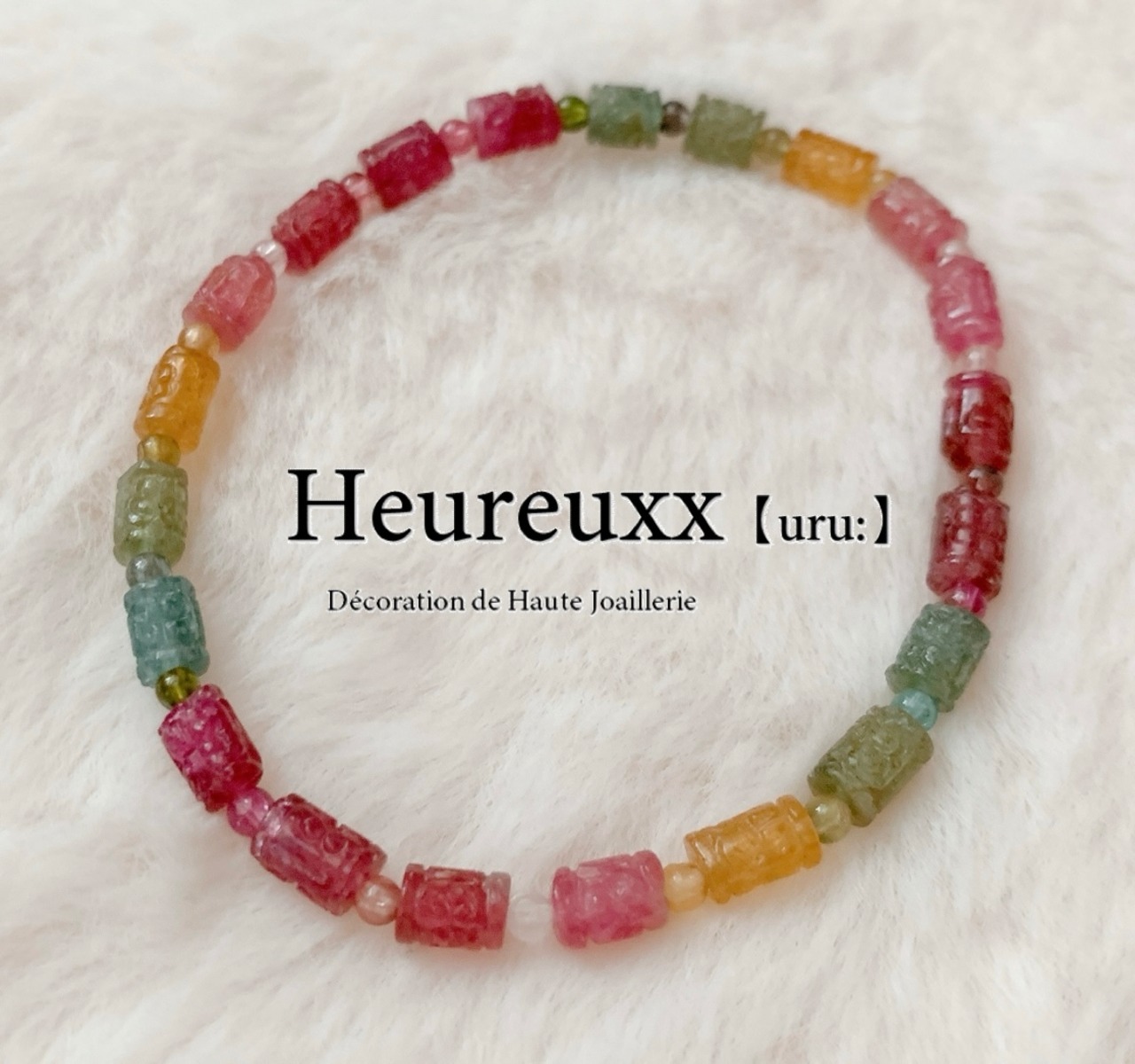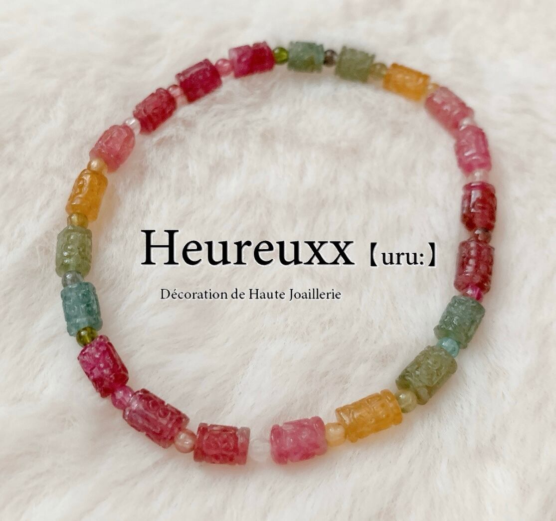 カラフルトルマリンの回紋珠のブレスレットです❁*。