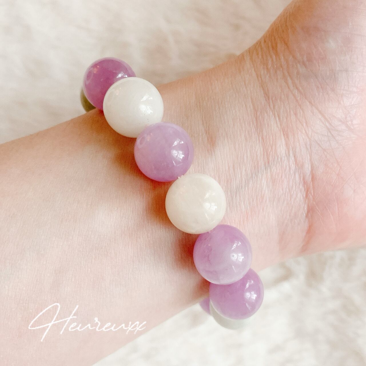 大玉のミックスカラーのクンツァイトのブレスレットでございます❁⃘*.゚