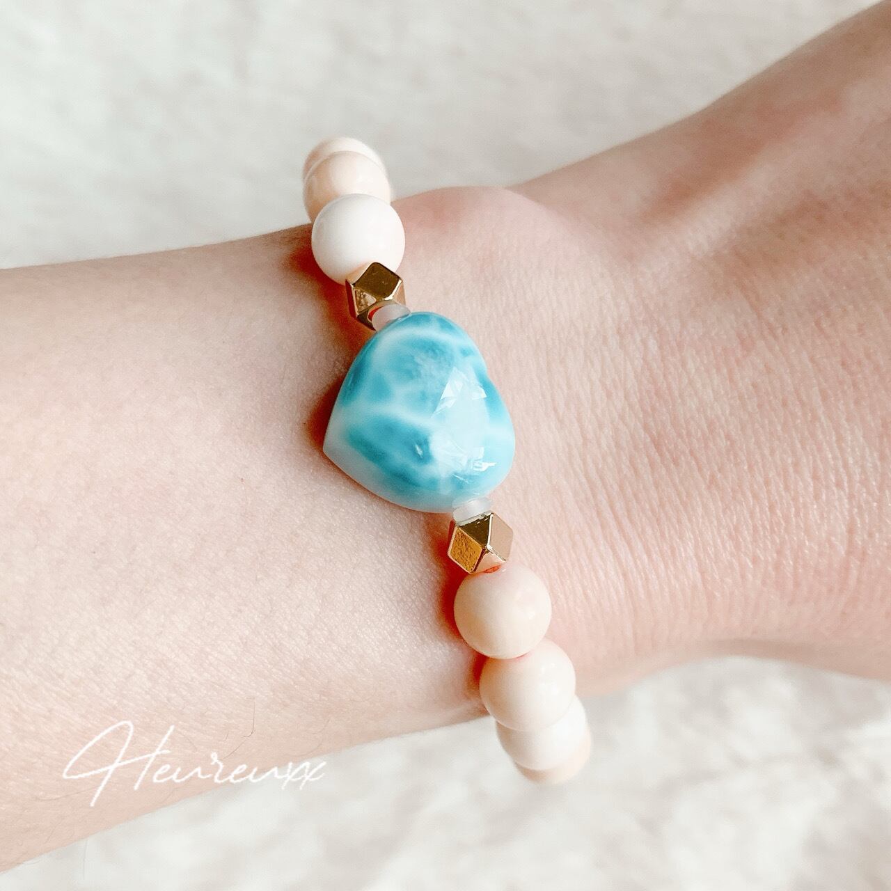 再販デザインパーツ違い♡クイーンコンクシェル ラリマー ハート ブレスレット♡
