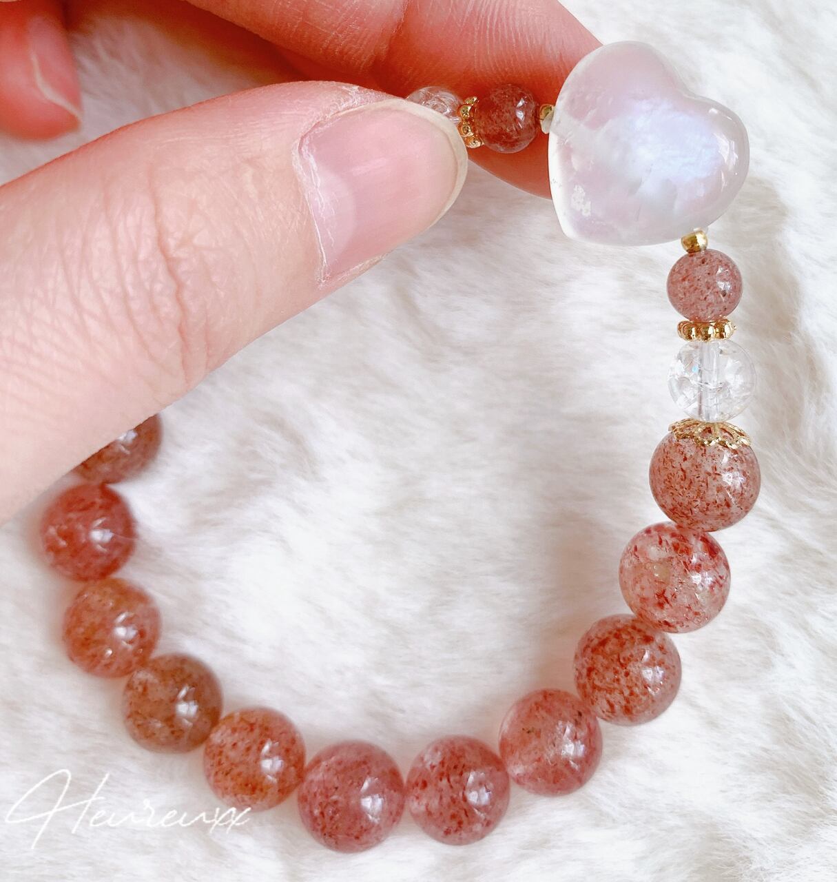 DB-88♡ストロベリークォーツ ペリステライト ハート クラック水晶 ブレスレット♡