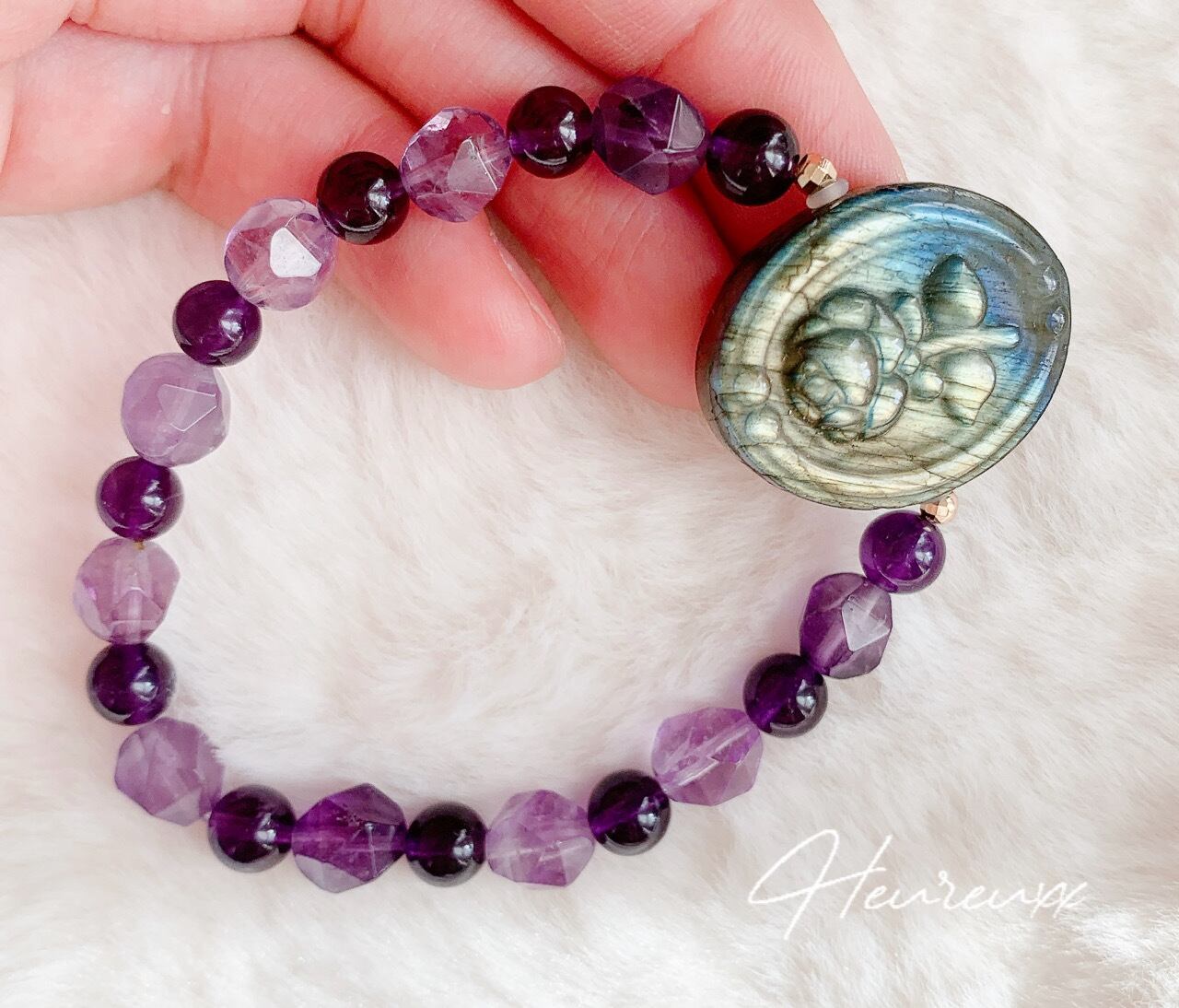 DB-92♡アメジスト ラブラドライト 薔薇 カメオ風 ブレスレット♡