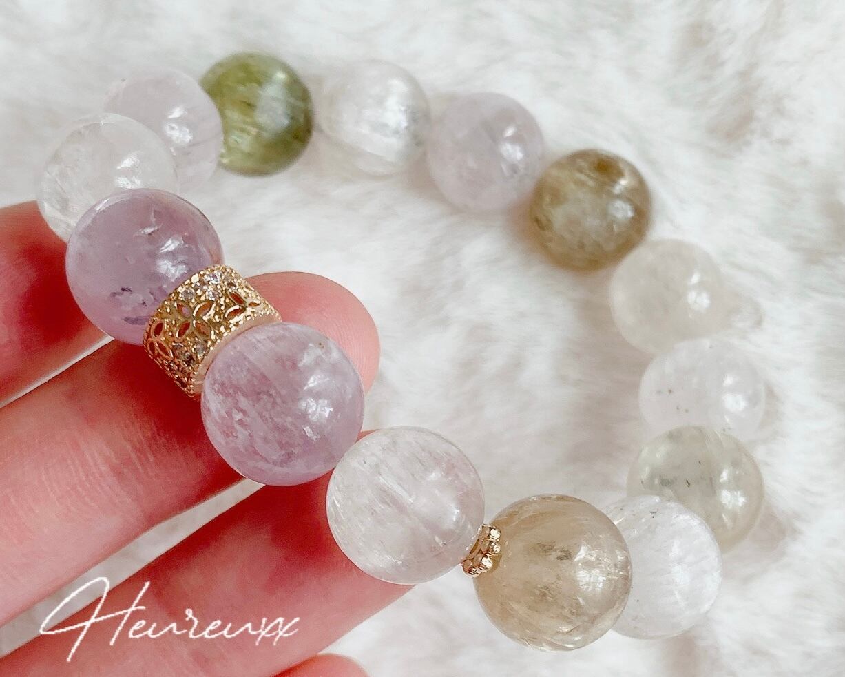 紫色やピンク色を示すものはクンツァイト、黄色系に発色するものはトリフェーン、黄緑色・緑色の発色をするものはヒデナイトと呼ばれております✧*。