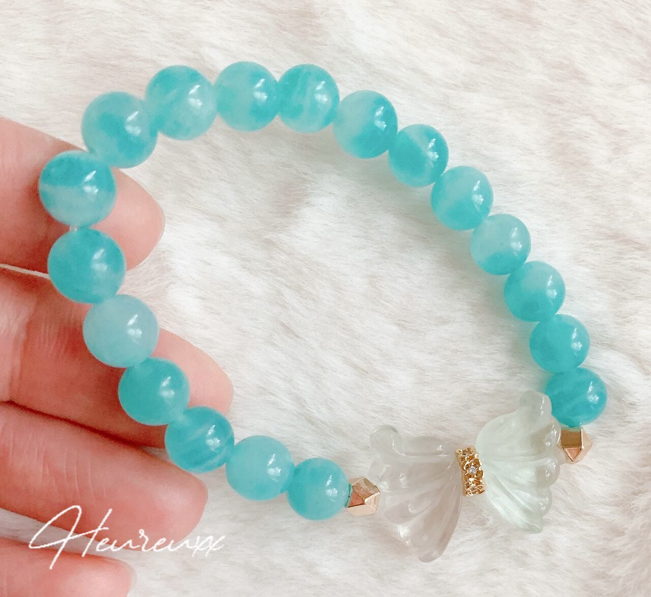 DB-95♡アマゾナイトシリカ フローライト 羽 ブレスレット♡
