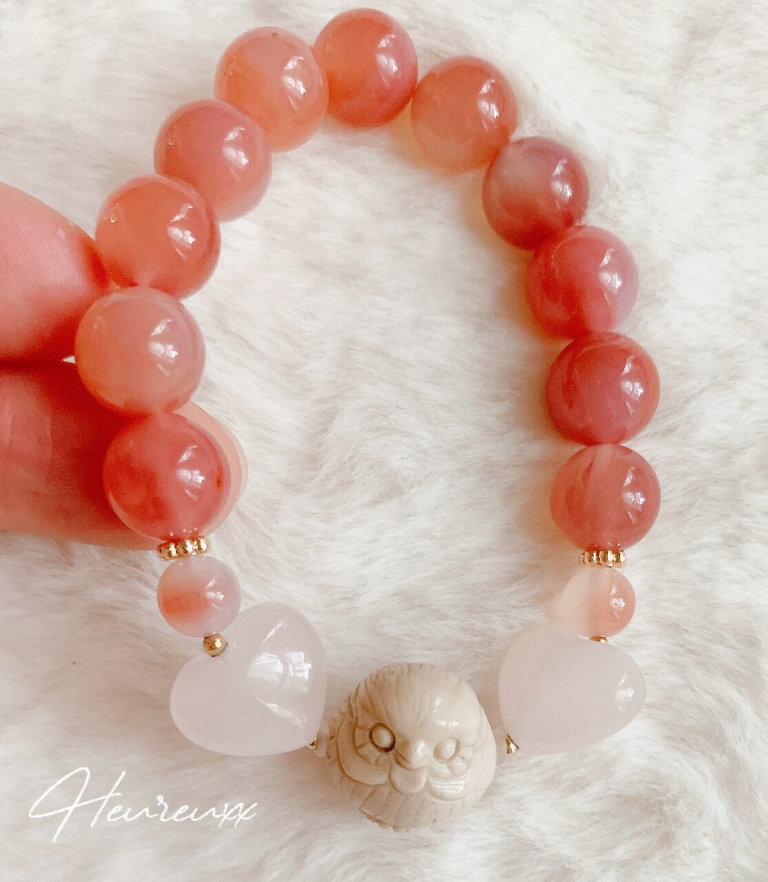 DB-101♡塩源瑪瑙 アラシャン瑪瑙 アラシャンメノウ 小鳥 ローズクォーツ ハート ブレスレット♡1