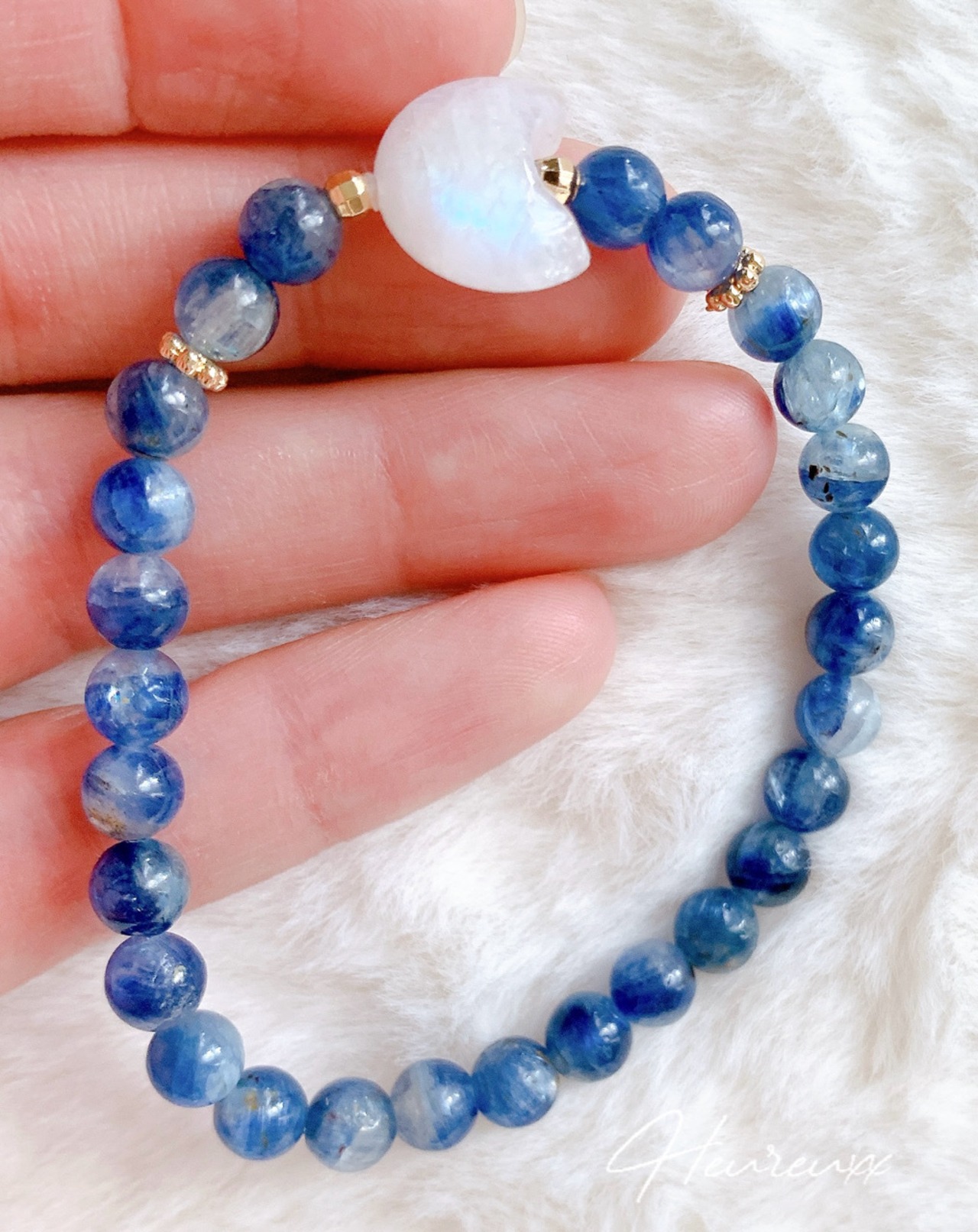 小粒ながらカイヤナイトのブルーが際立つとても綺麗なブレスレットでございます❁⃘*.゚