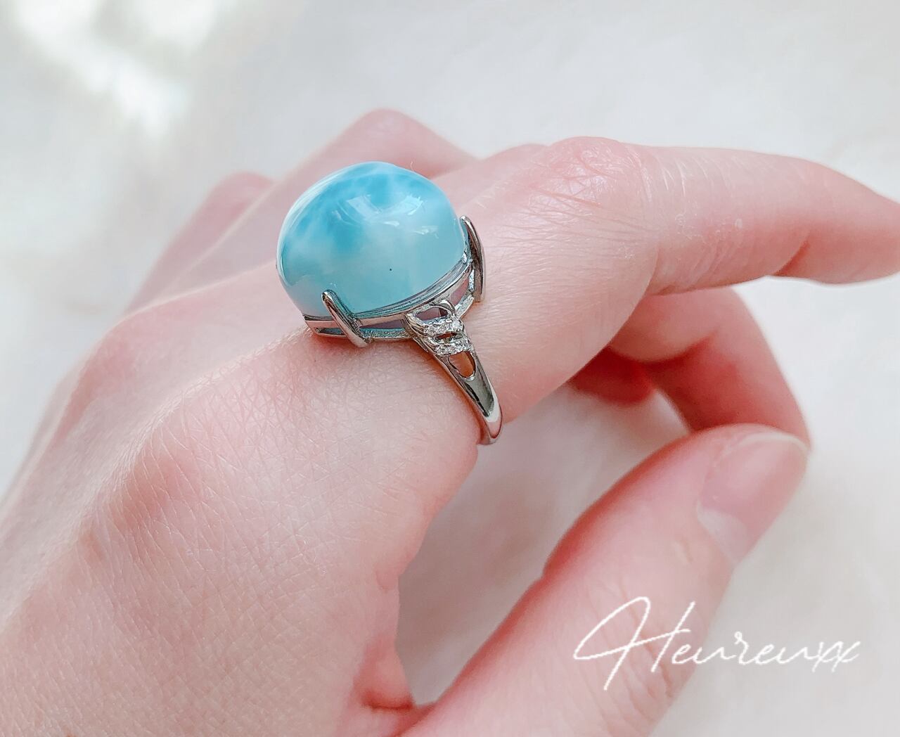 とても品質が良く、濃さ模様も艶感も綺麗なラリマーのハート型のリングでございます♡