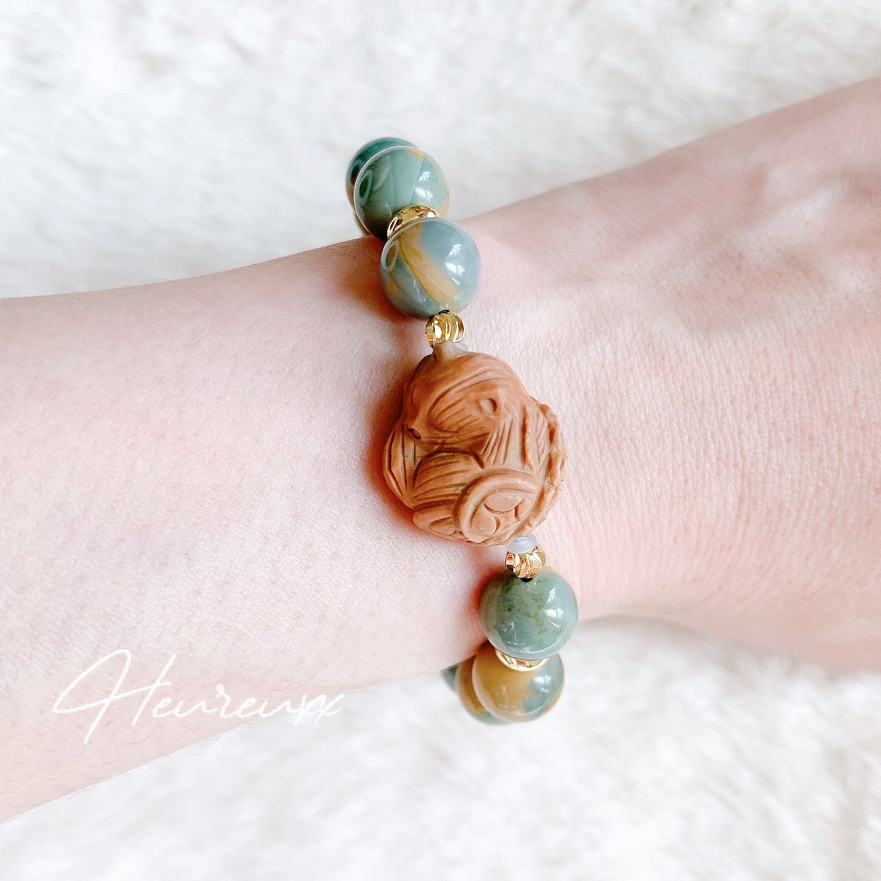 DB-211♡バイカラーアラシャン瑪瑙 アラシャン瑪瑙眠り猫 アラシャンメノウ ブレスレット♡