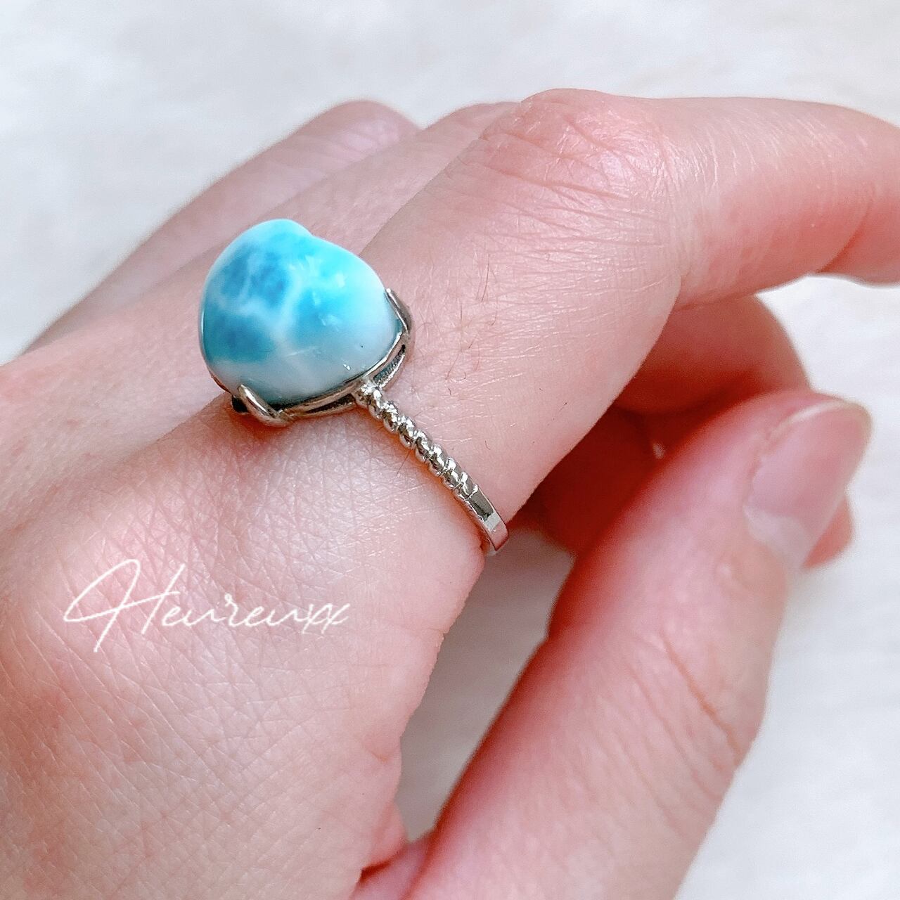 再販デザイン♡ラリマー ハート リング シルバー925 フリーサイズ♡