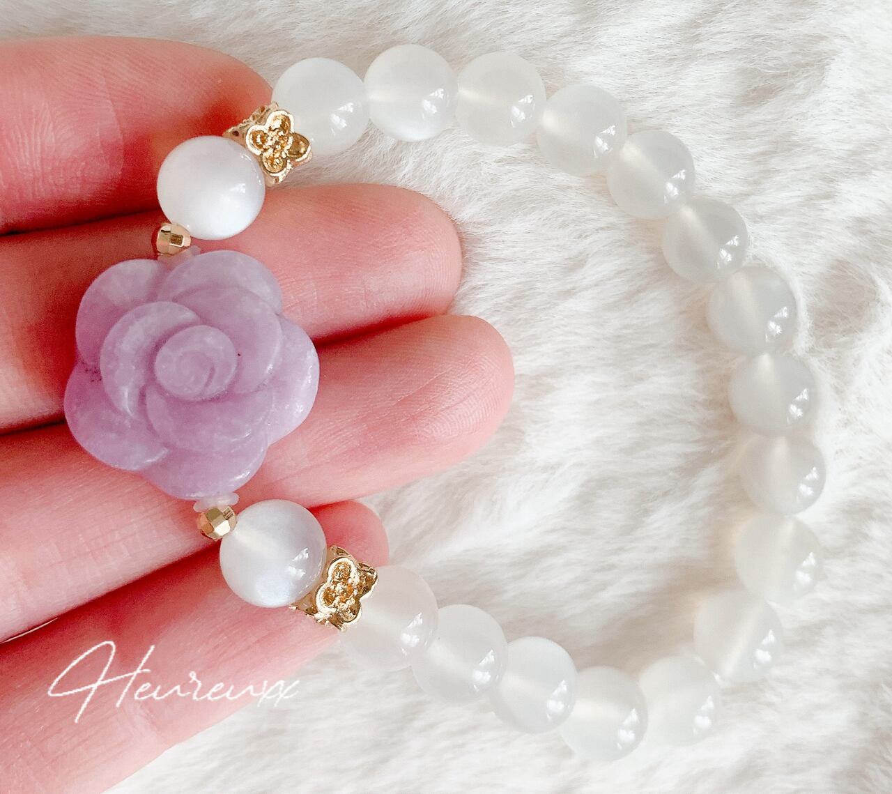 ホワイトムーンストーンにピンクレピドライトの薔薇を合わせました❁⃘*.゚