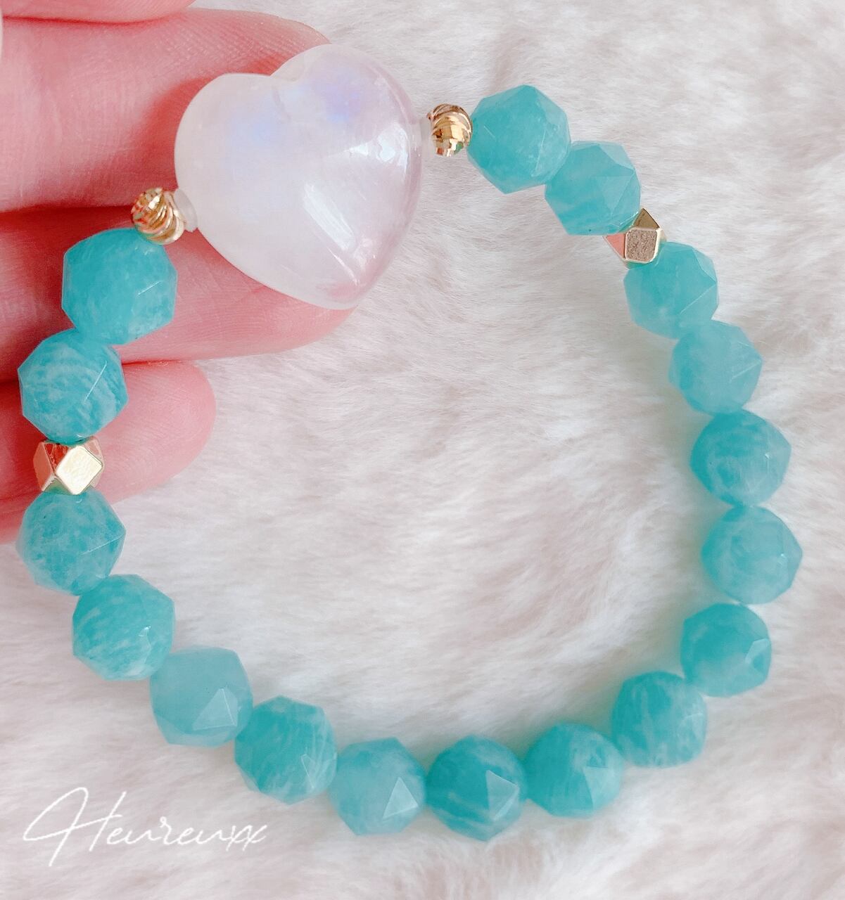 DB-159♡アマゾナイトシリカ ムーンストーン ハート ブレスレット♡