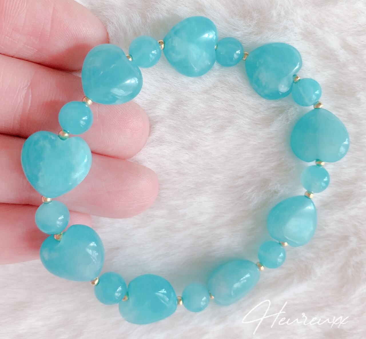 発色の綺麗なアマゾナイトのハートのブレスレットはとても可愛らしく、あまりない形かと思います♡