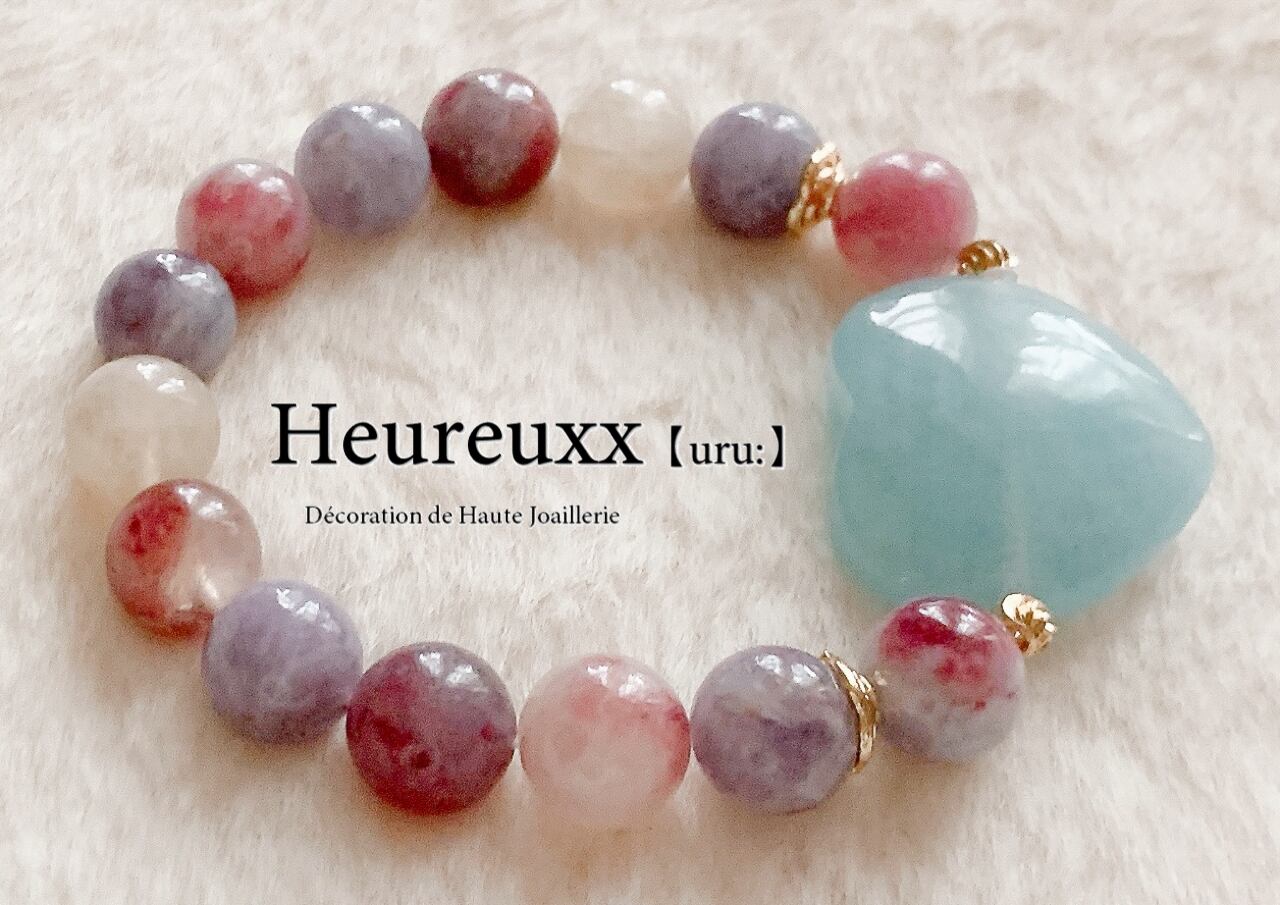 DB-167♡ユニコーンストーン アクアマリン ハート ブレスレット♡