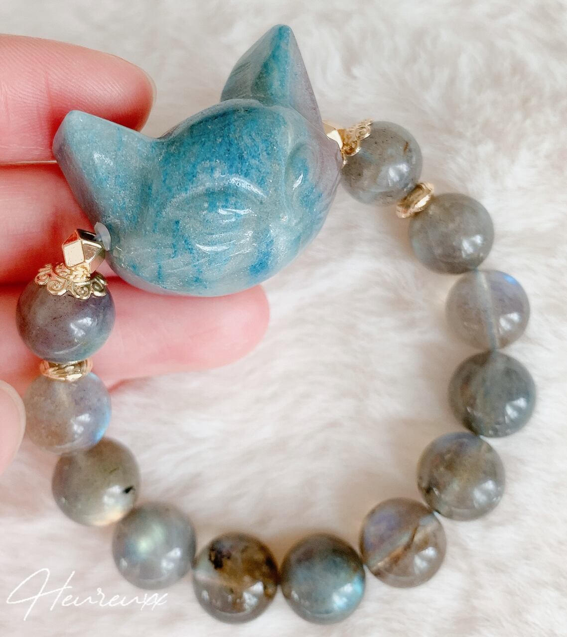♡ラブラドライト トロレアイト 猫 ブレスレット♡