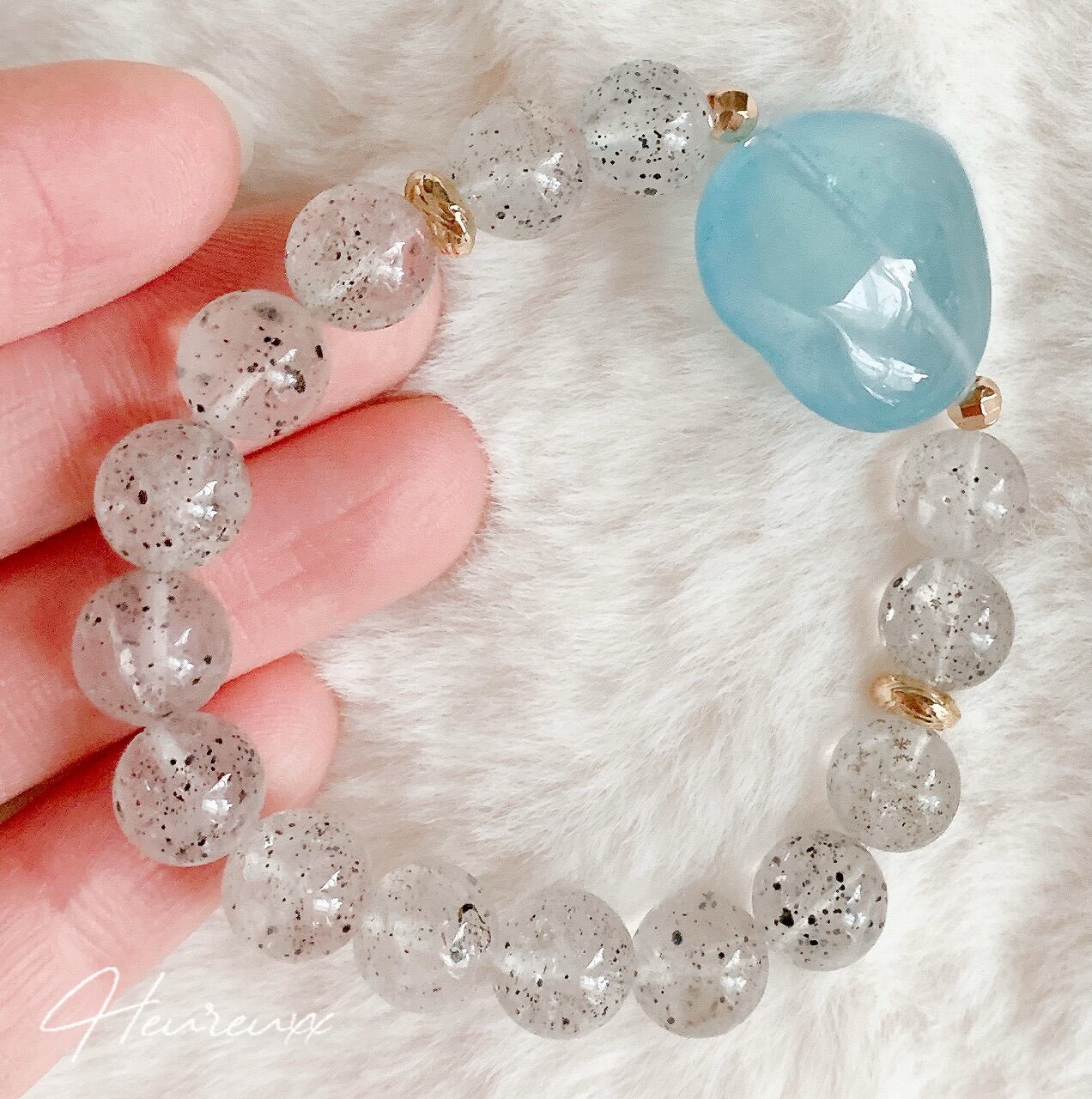 ブラックストロベリークォーツにアクアマリンのハートのパーツを合わせました❁⃘*.゚